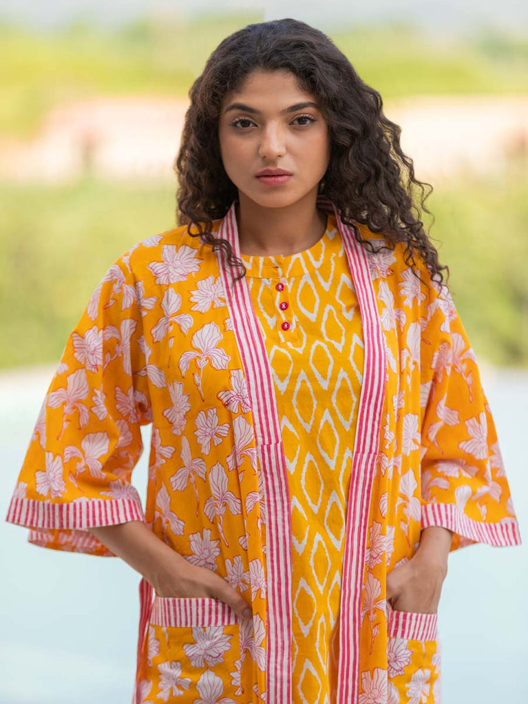 Snuggle Cotton Block Printed Kimono/Robe