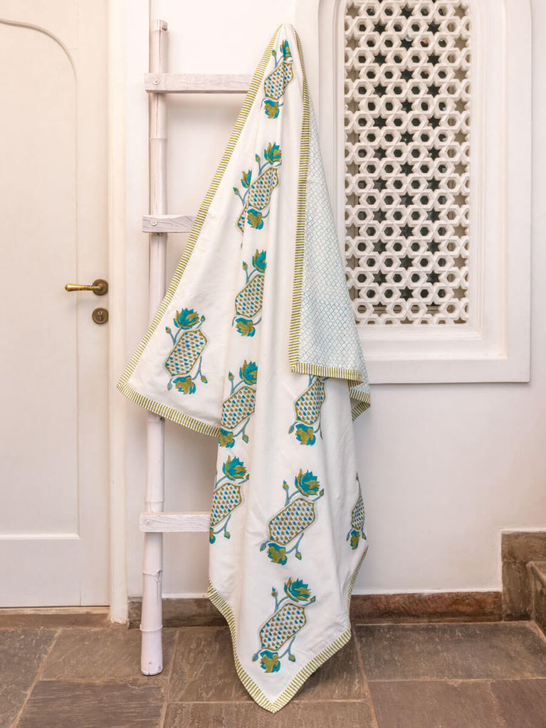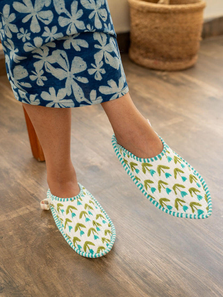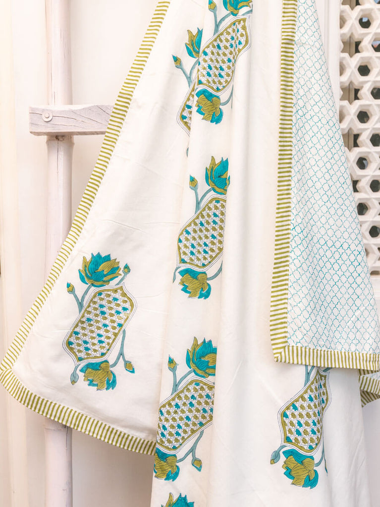 Tiny Tulip Block Printed Cotton Travel Vanity Case