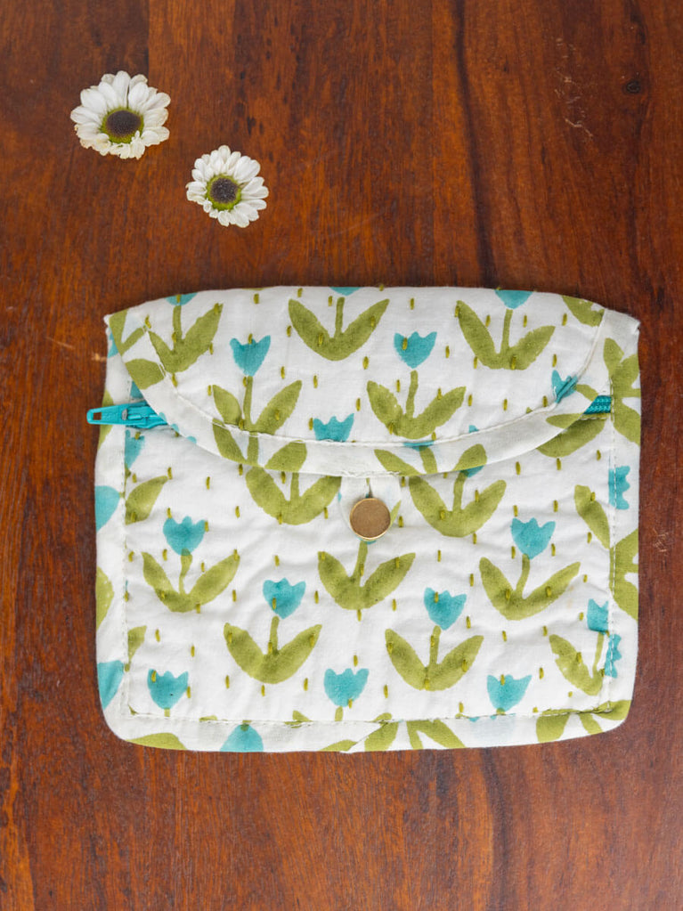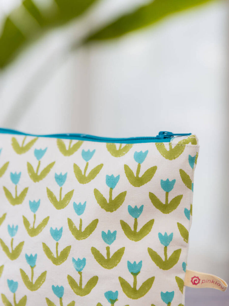 Tiny Tulip Hand Block Print Cotton Travel Pouch