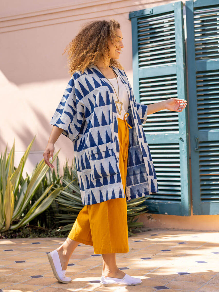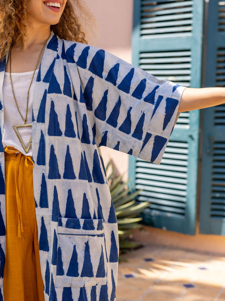 Tulum Dabu Hand Block Printed Cotton Kimono Jacket