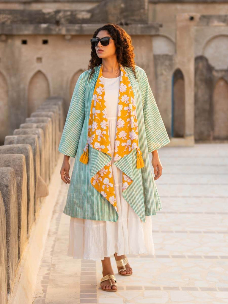 Valley of Flowers Block Printed Waterfall Reversible Shrug