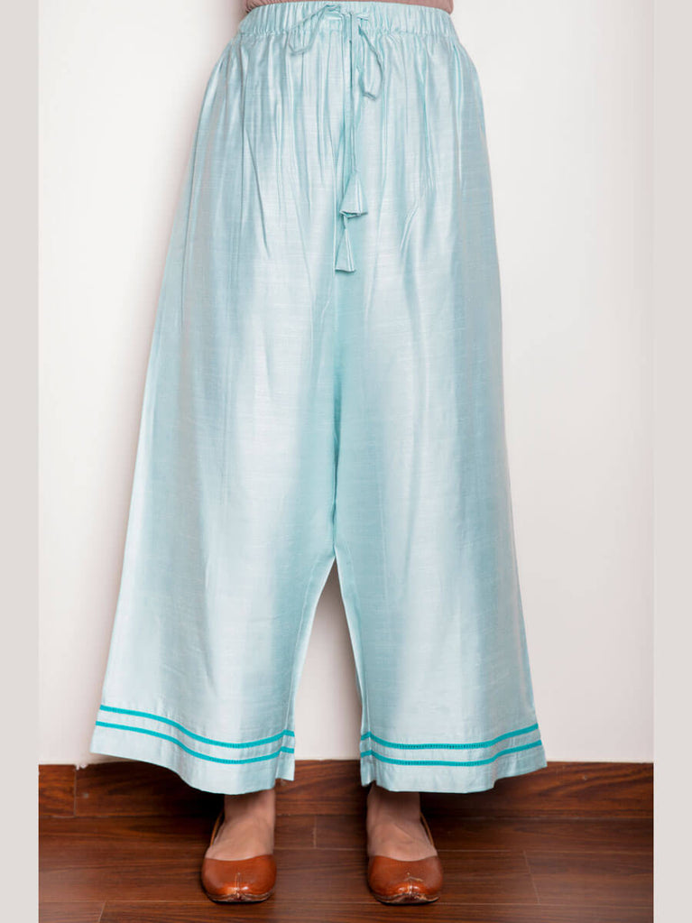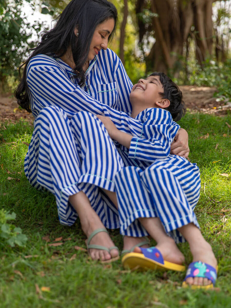 Blue Stripes Block Printed Cotton Top & Pyjama Set