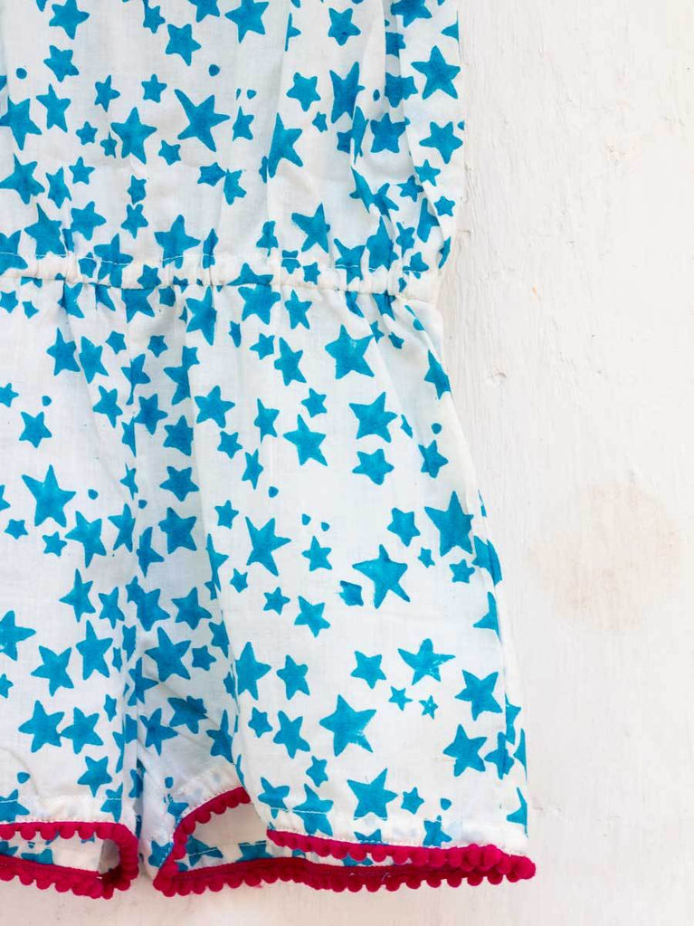 Blue Star Organic Cotton Block Printed Jumpsuit with Pompoms