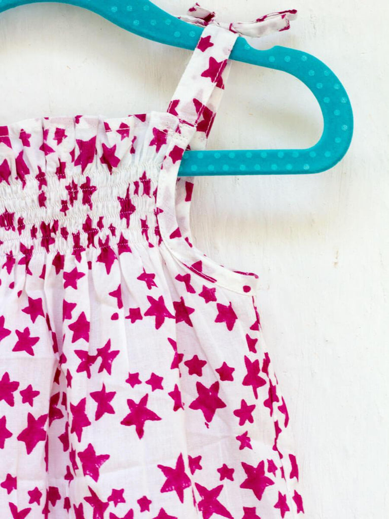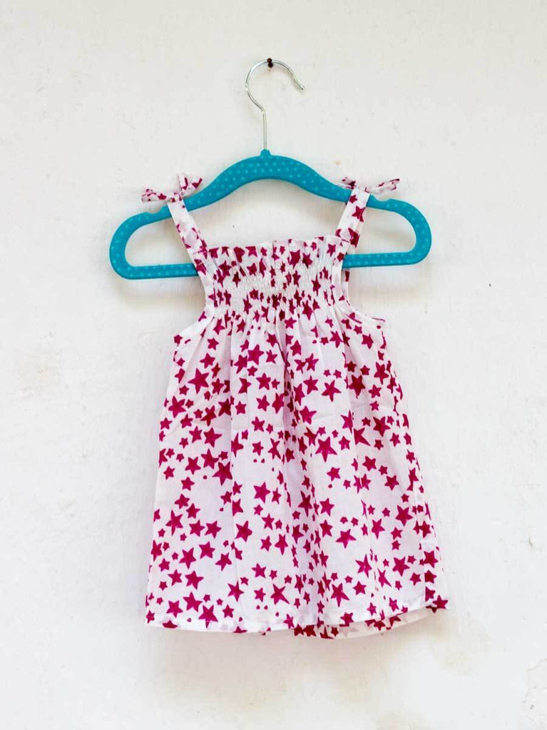 Deep Pink Starry Sky PinTuck Block Printed Cotton Frock