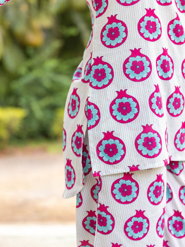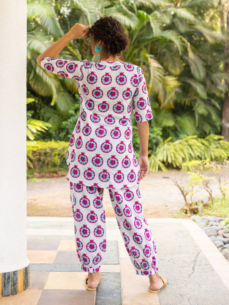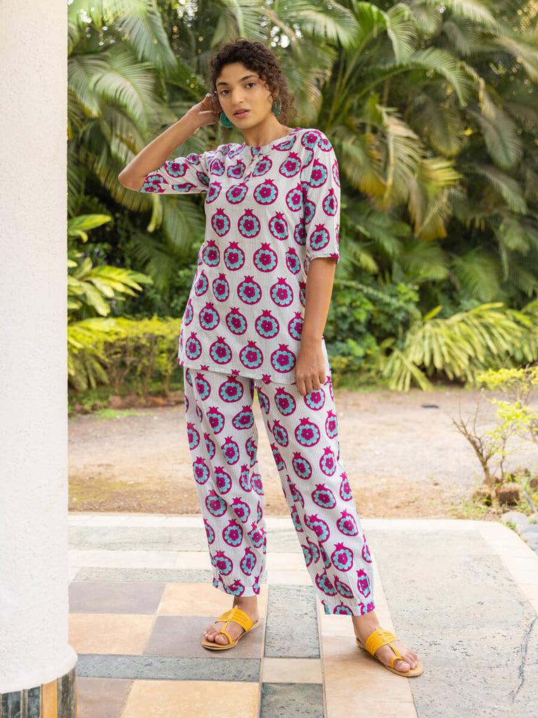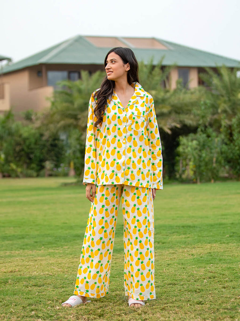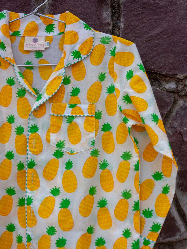 Ananaas Block Printed Cotton Top & Pyjama Set