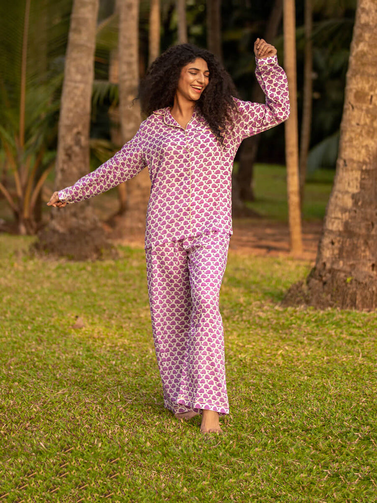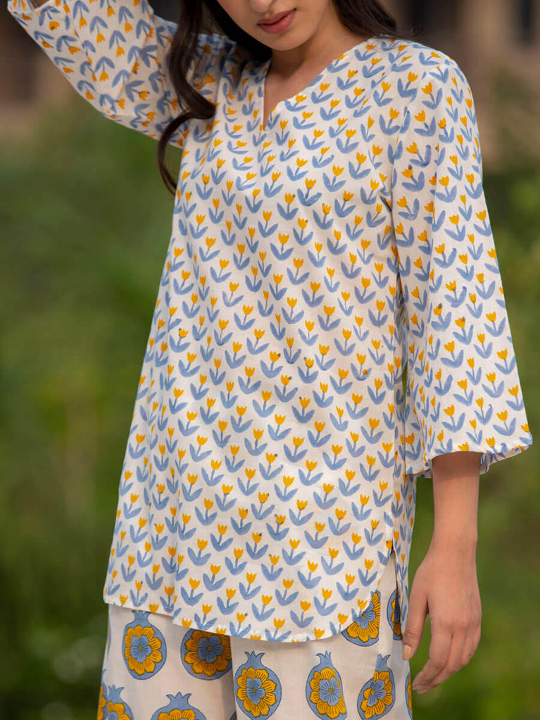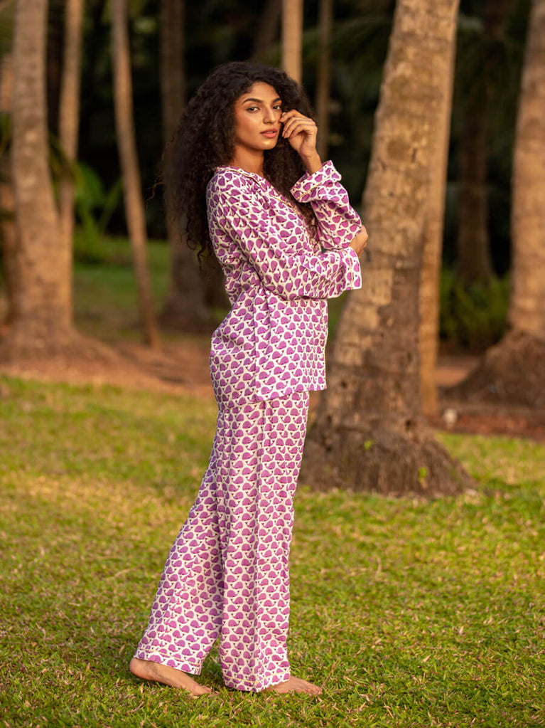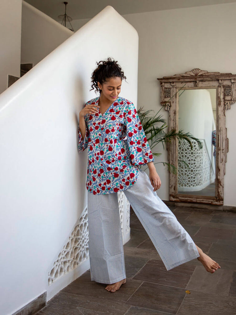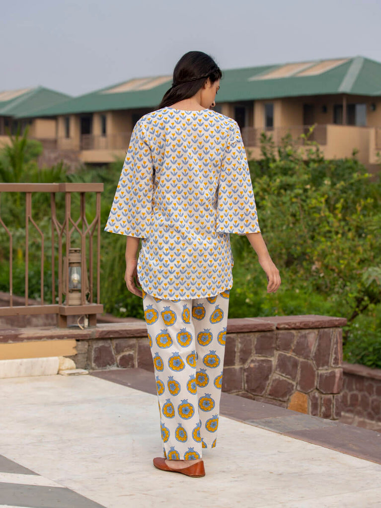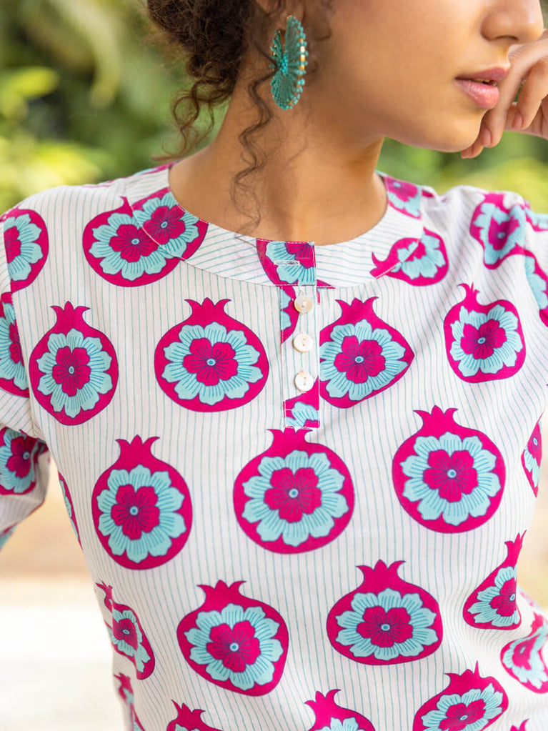 Ananaas Block Printed Cotton Top & Pyjama Set
