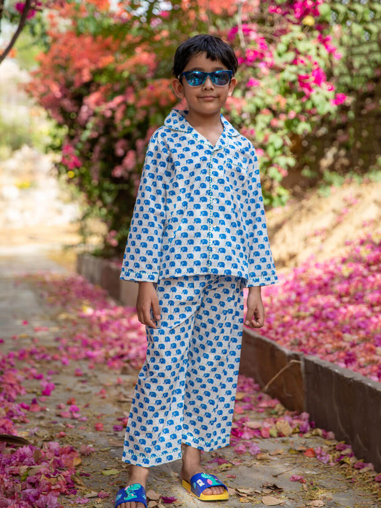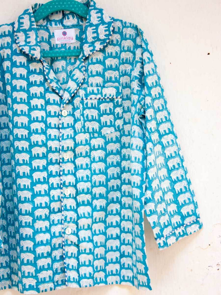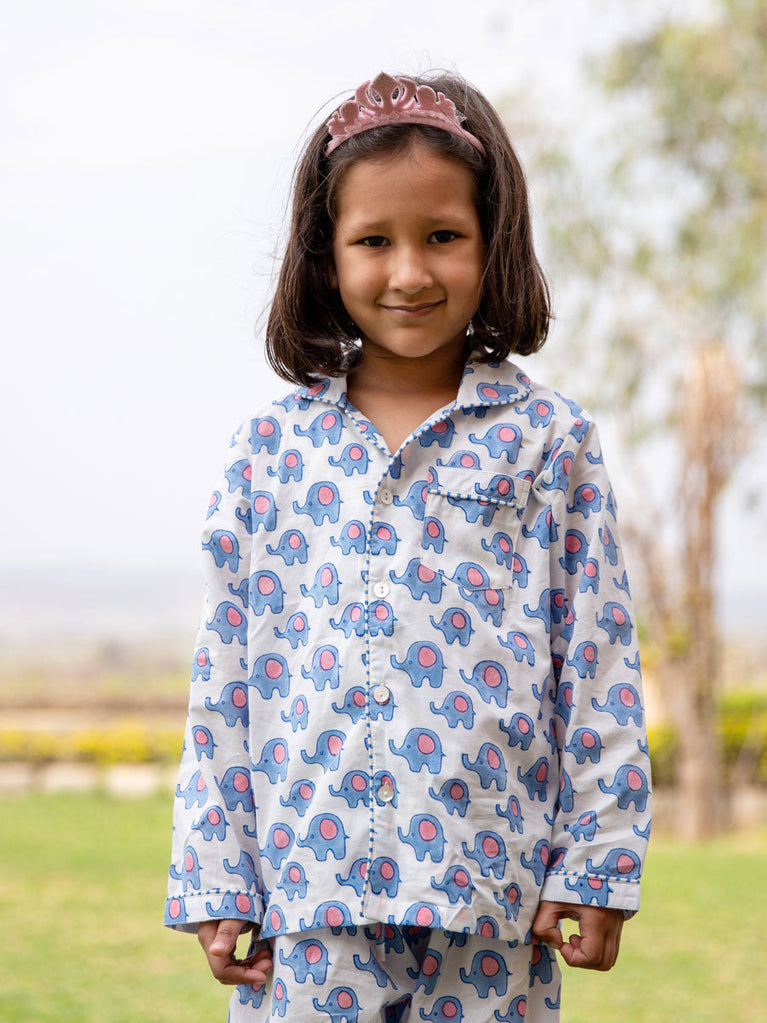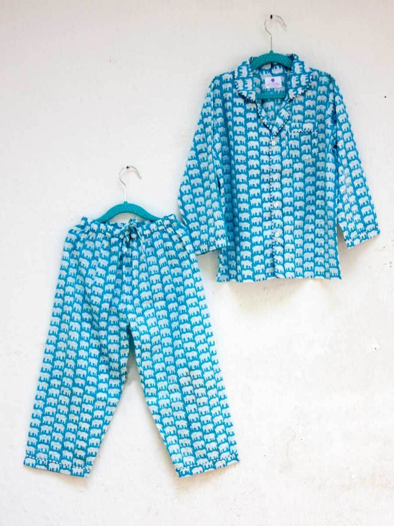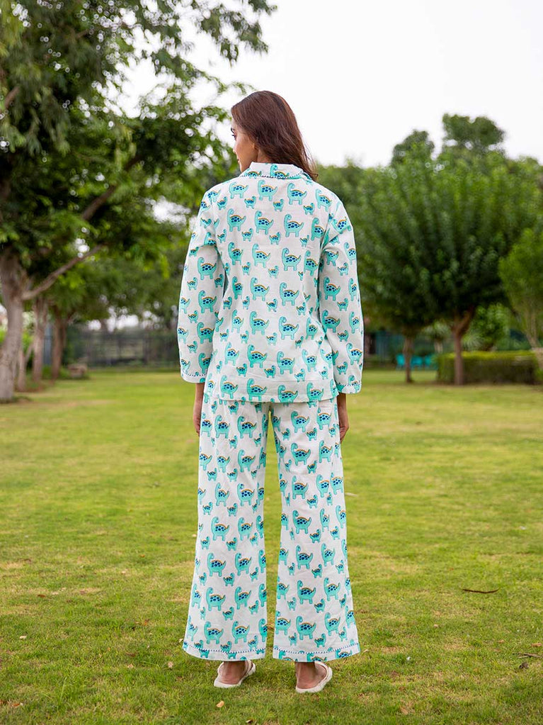 Haathi's March Block Printed Cotton Top & Pyjama Set