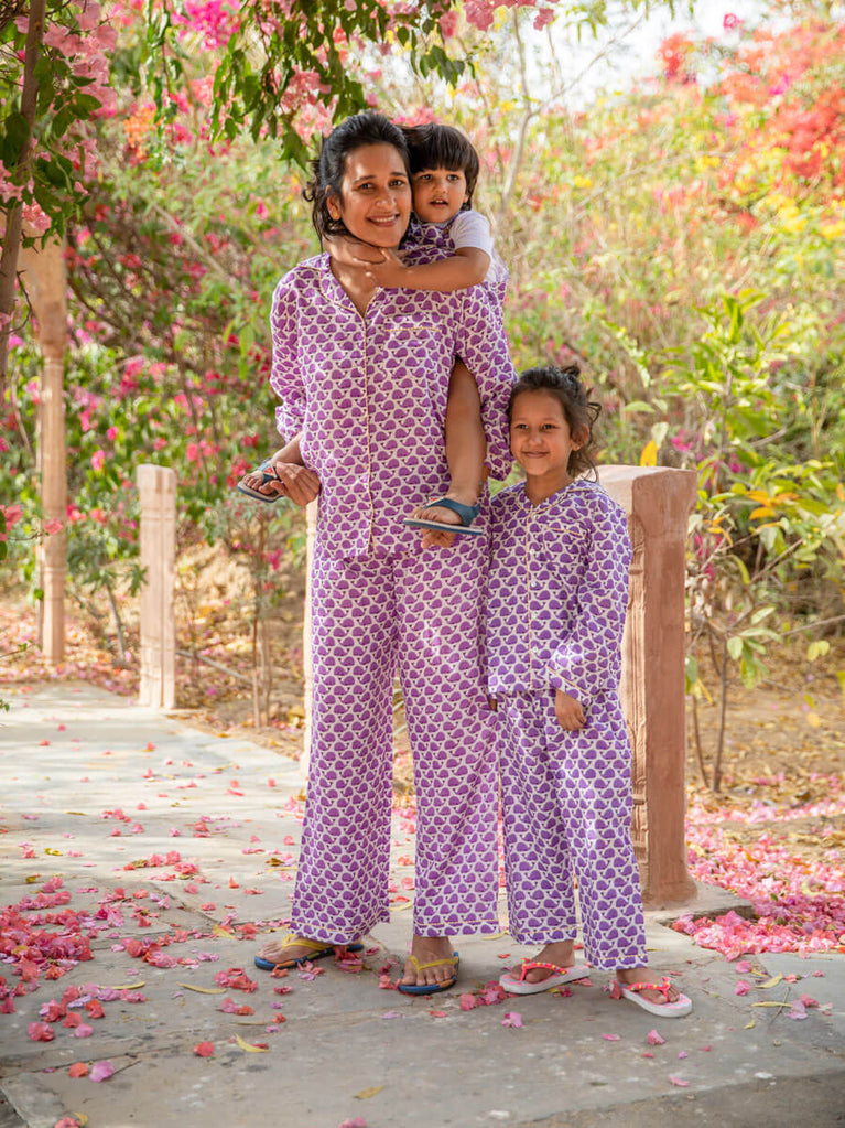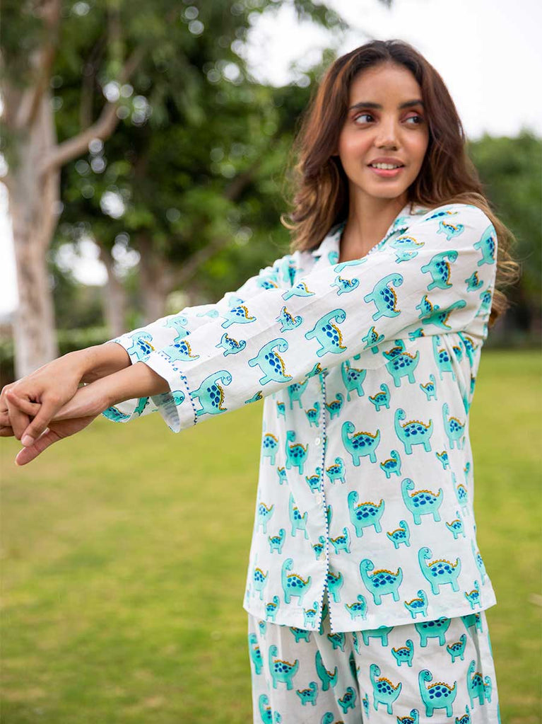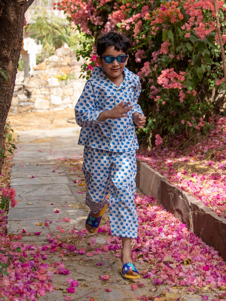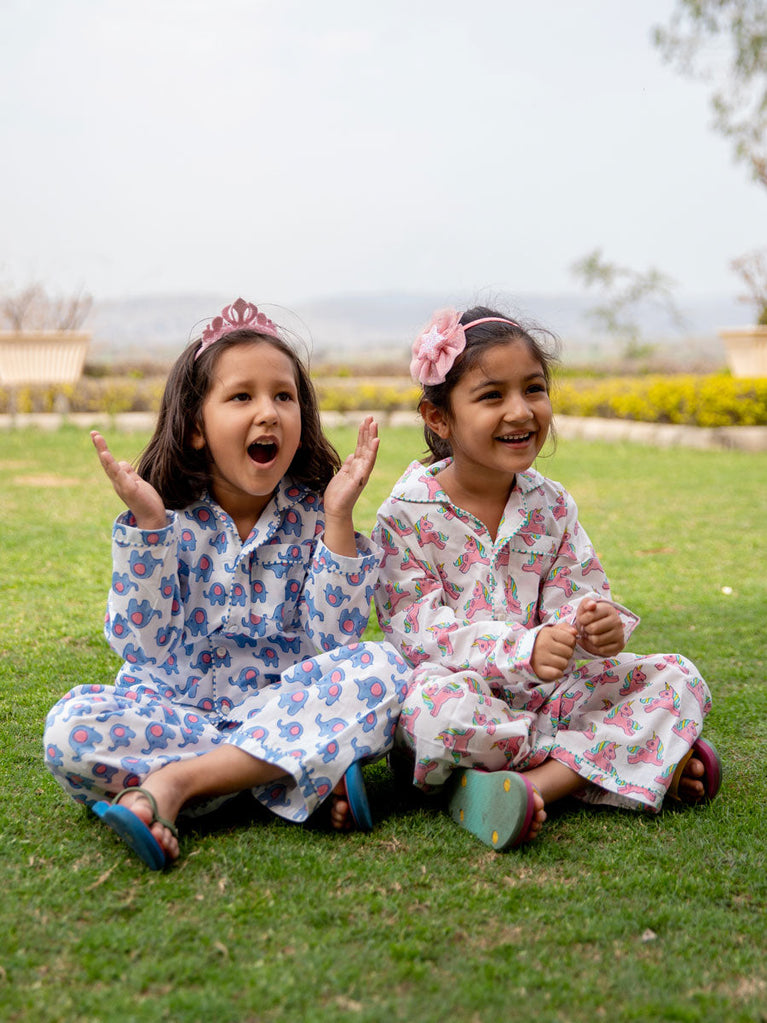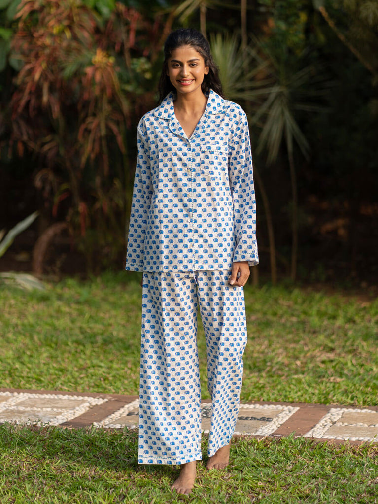 Haathi's March Block Printed Cotton Top & Pyjama Set