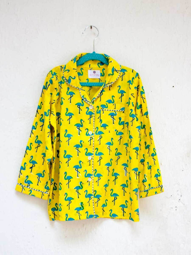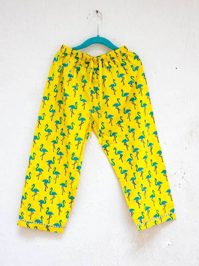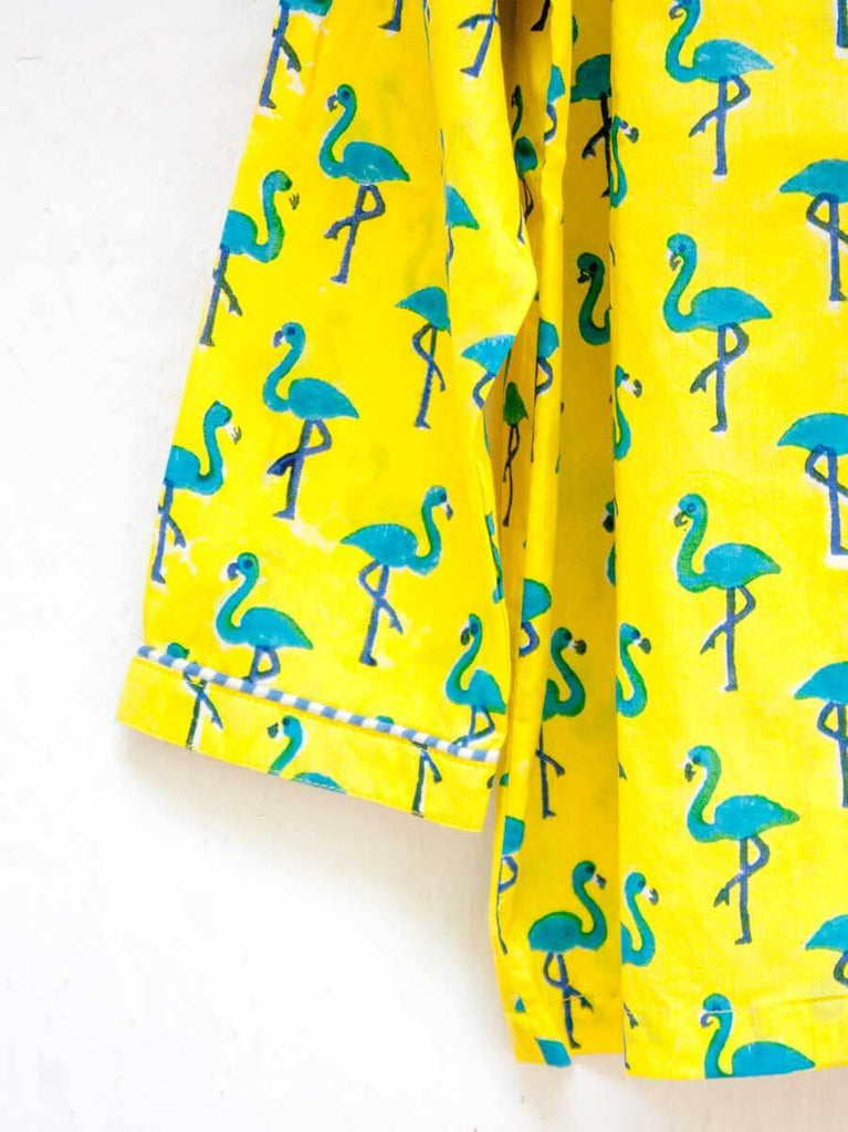 Flamingo Dance Block Printed Cotton Top & Pyjama Set
