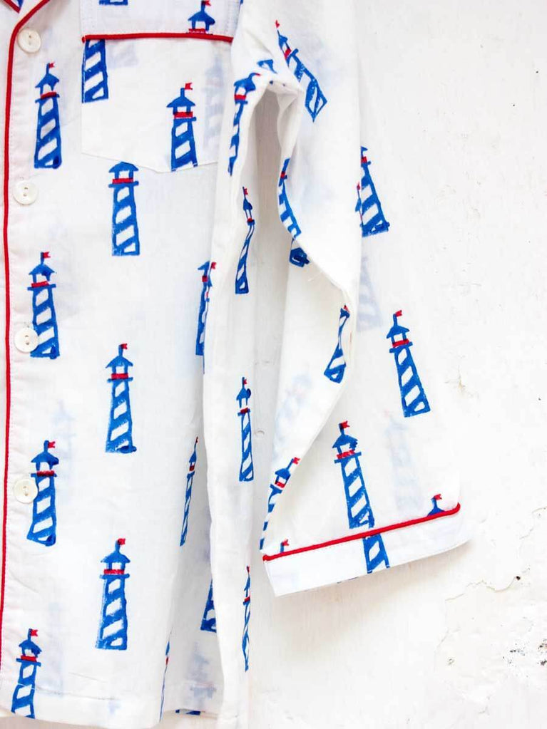 Lighthouse Magic Block Printed Cotton Top & Pyjama Set