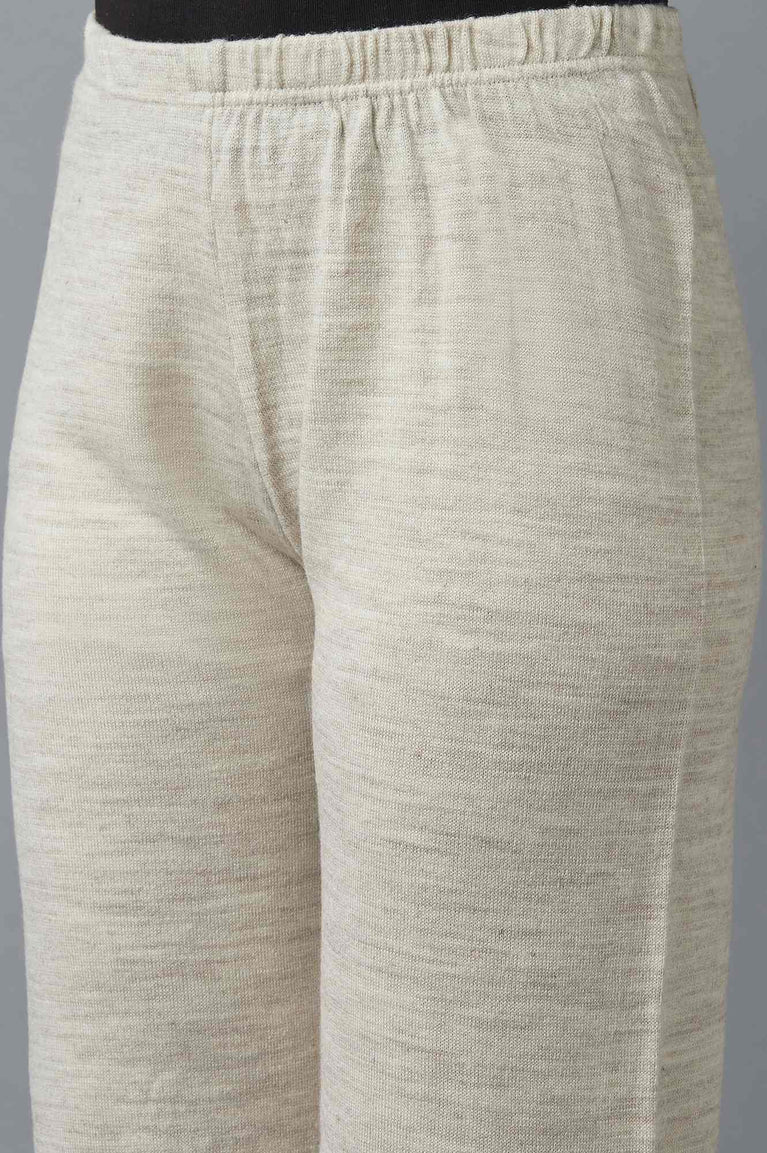 Beige Solid Straight Fit Acrylic Palazzo With Elasticated Waist