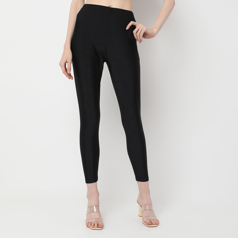 These solid pattern slim fit leggings has ankle length, mid rise waist. Made from nylon spandex, it is soft and comfortable to wear.