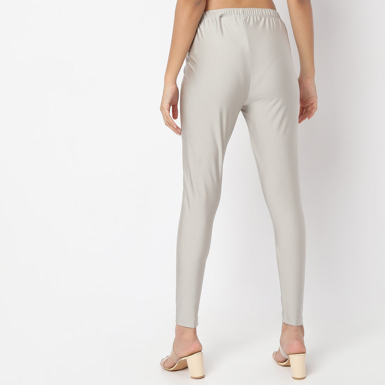 Ankle Length Tights In Straight Silhouette And Skin Fit. The Tights Have Mid-Rise And Elasticated Waistband.