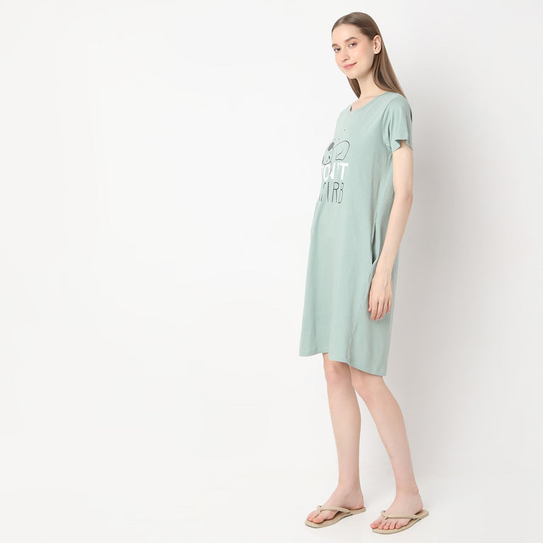 Elevate your wardrobe with this stylish and comfortable knee-length gown. Designed for versatility, it combines modern aesthetics with everyday practicality. The **animal print** pattern adds a bold and trendy touch, making it perfect for various occasions. Crafted from **100% cotton**, this gown ensures breathability and softness, keeping you comfortable throughout the day. The **regular fit** offers a relaxed and easygoing silhouette, ideal for those who prioritize comfort without compromising on style. With **two pockets**, it provides both functionality and convenience. Whether you're heading out for a casual day or a semi-formal event, this gown is a versatile addition to your collection.