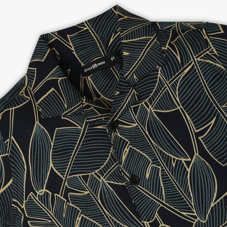 Experience the perfect blend of comfort and style with this Boys Printed Cuban Half Sleeve Shirt. Crafted from 100% viscose, this shirt offers a soft touch and breathable comfort, making it ideal for any occasion. The vibrant printed pattern adds a playful touch, perfect for young boys who love to express their personality through fashion.