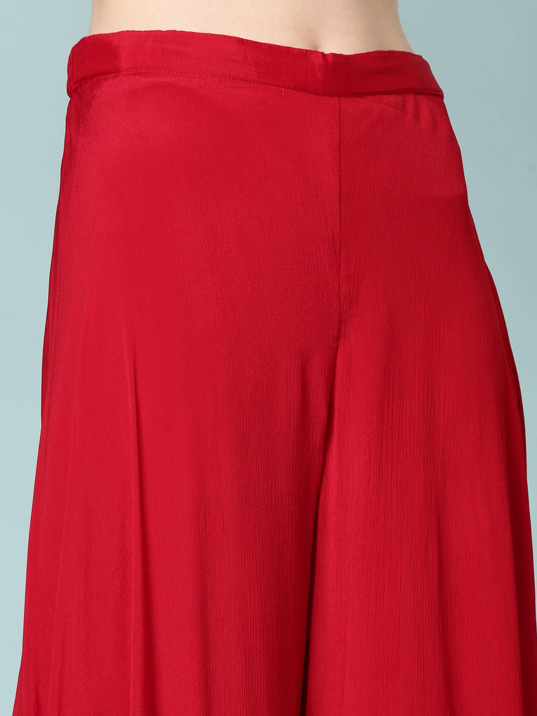 Maroon Chinnon Three Piece Set