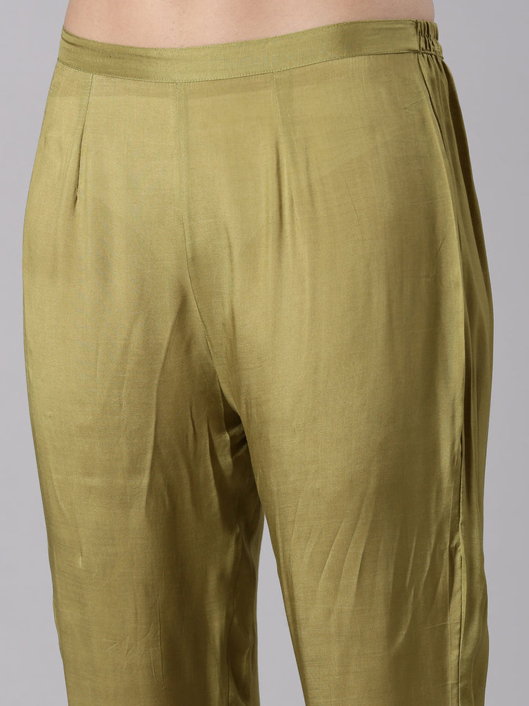 Mehendi green crepe three piece suit set