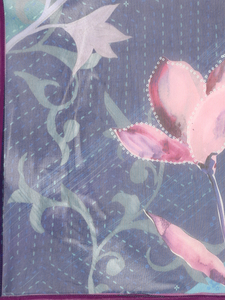 Midnight Blue thread work three piece crepe suit set with organza dupatta