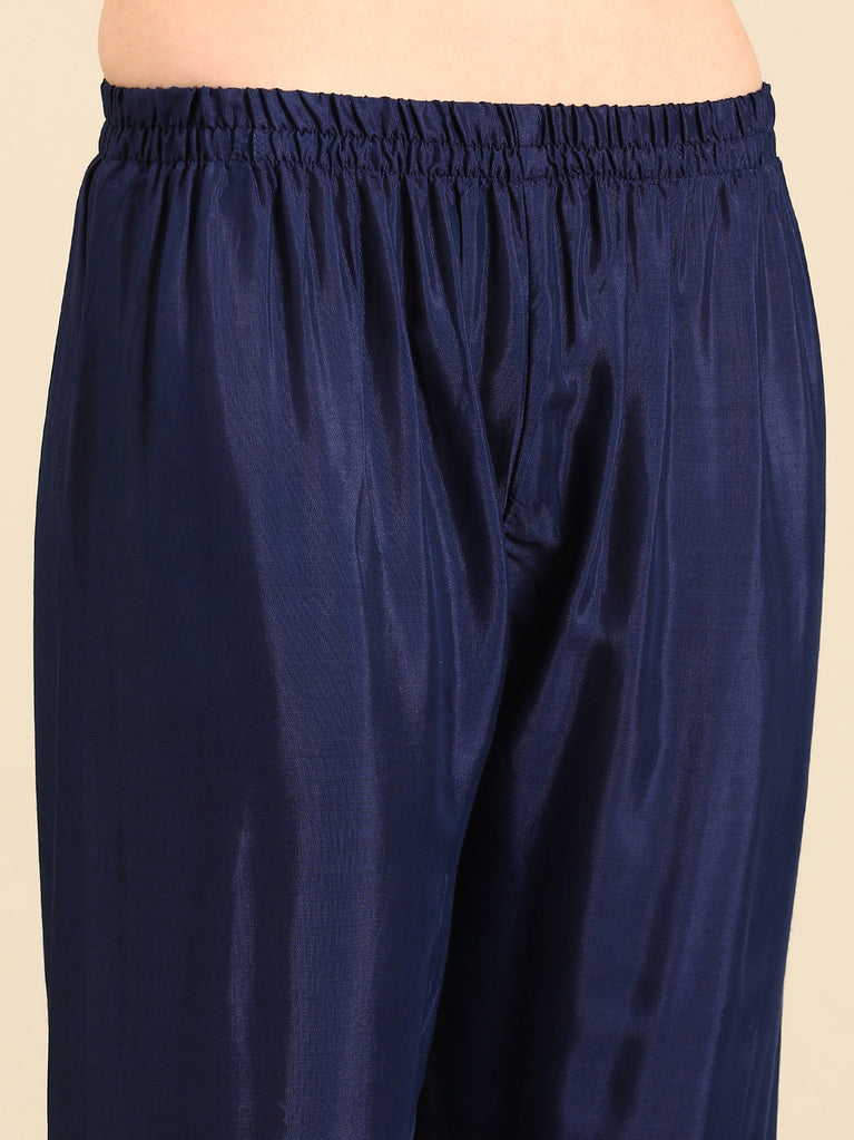Midnight Blue Silk Hand embroidered three piece suit set