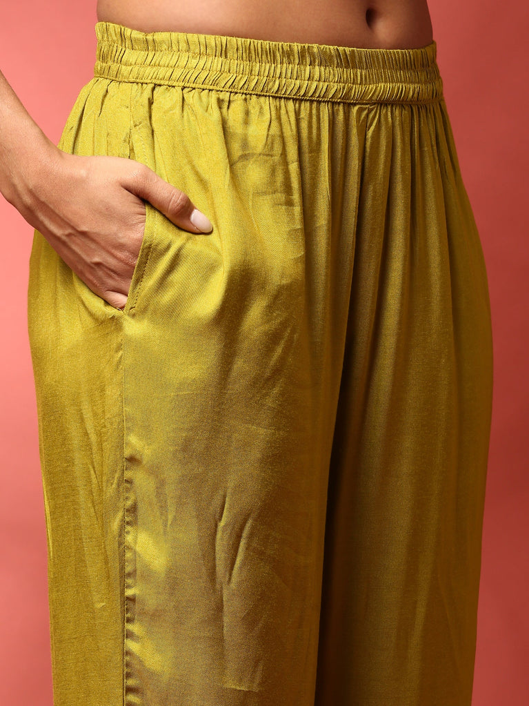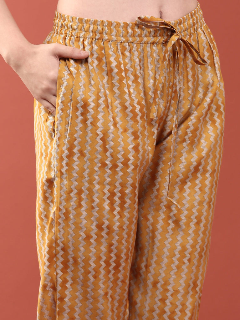 Mustard Crepe Printed Three Piece Set