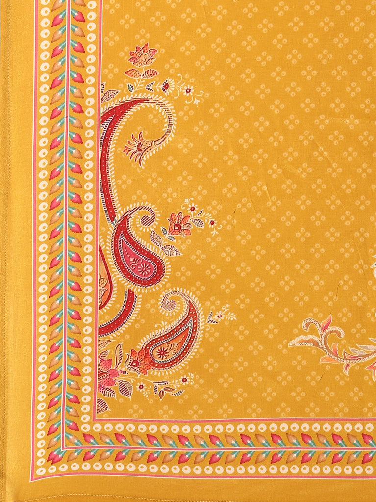 Mustard Muslin Digital Print Three Piece Set