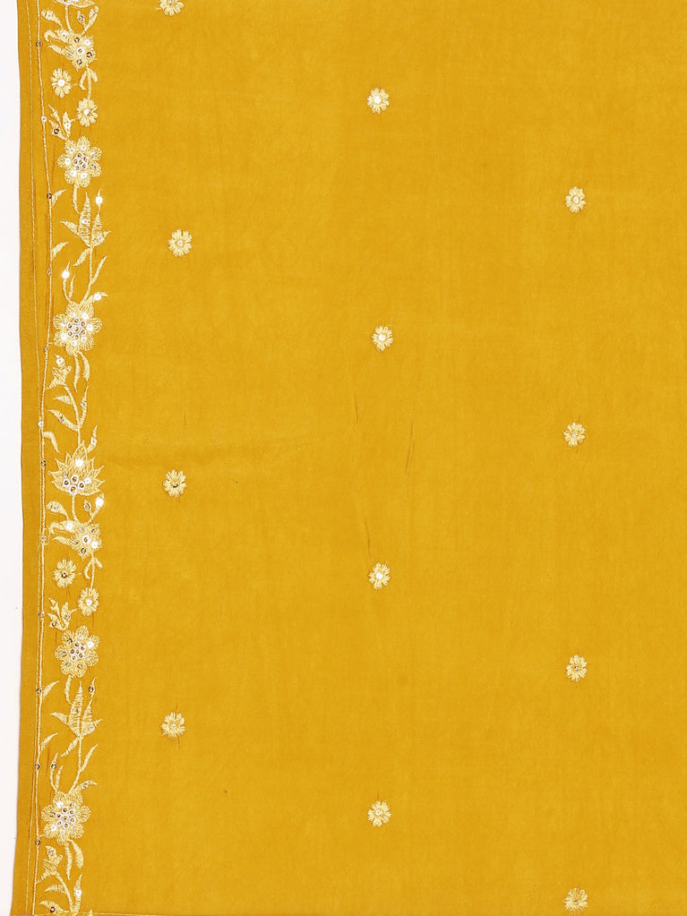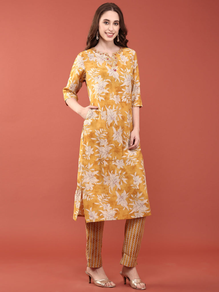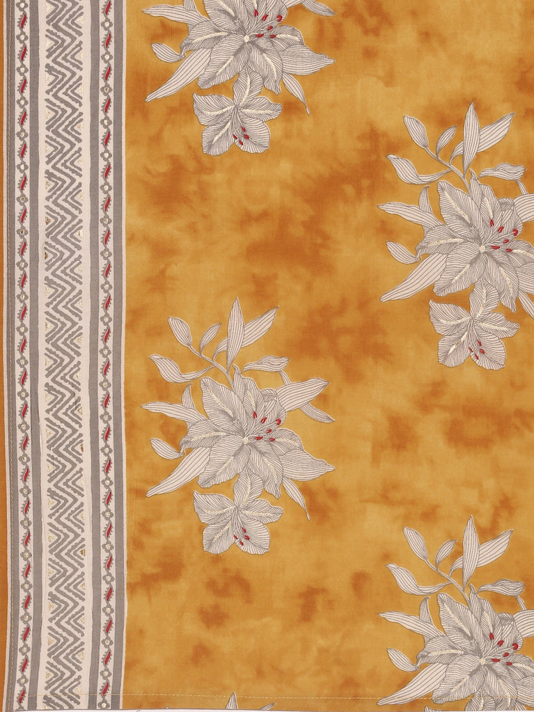 Mustard Chanderi Floral Printed Three Piece Set