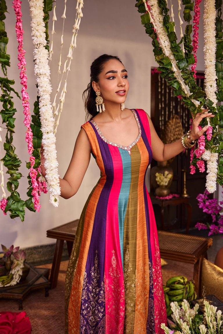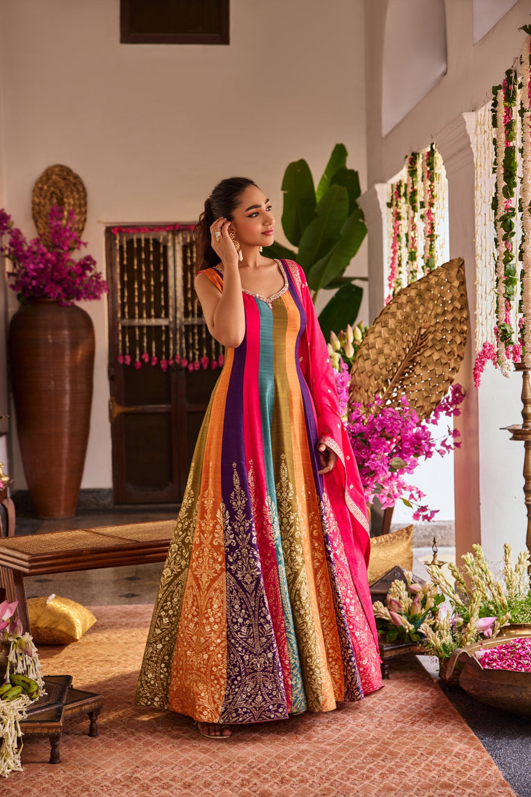 Multi Color Silk Anarkali Three Piece Set
