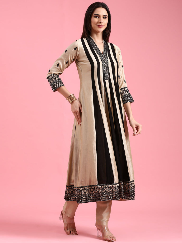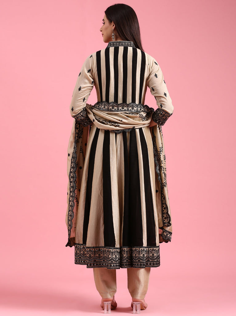 Beige Tissue Heavy Zari Embroidered Anarkali Set