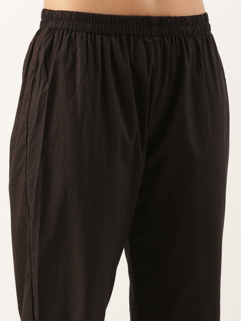 Black Cotton Printed Three Piece Set