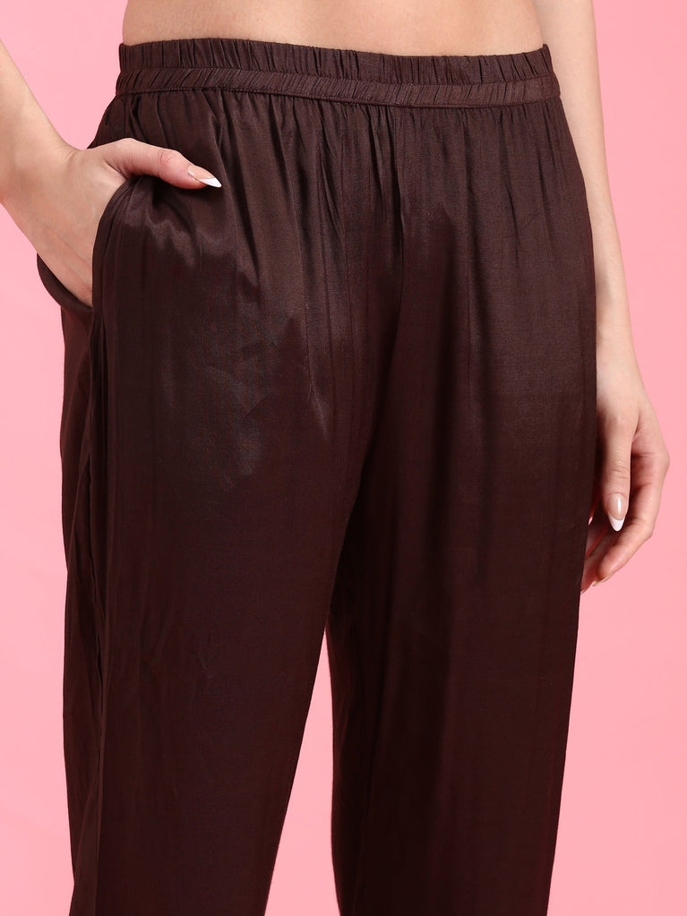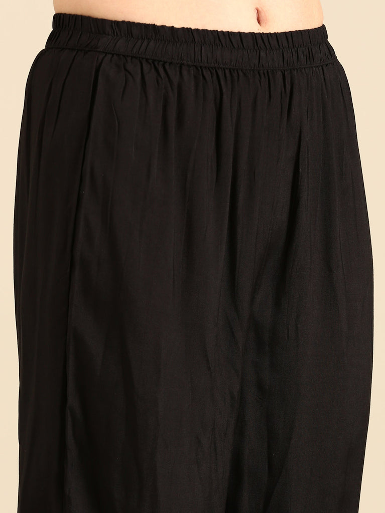 Crafted from premium black georgette, this Palazzo Set features intricate embroidery that enhances its sophisticated charm. The lightweight fabric drapes gracefully, ensuring comfort and an elegant silhouette. Ideal for formal events or festive occasions, the expertly designed set combines traditional embroidery techniques with modern tailoring for a polished, timeless look.