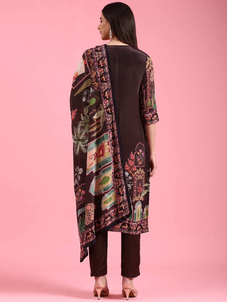Black Dola Silk Digital Print Three Piece Set