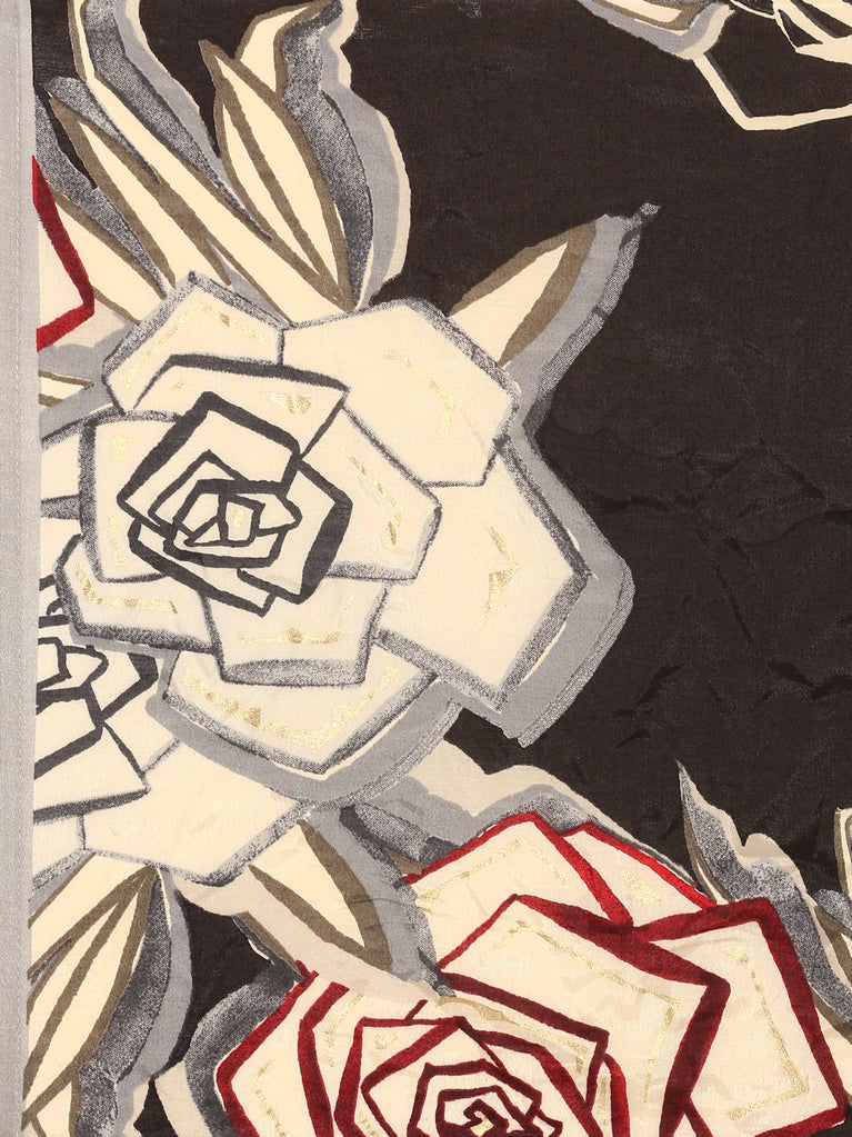 Black Muslin Floral Printed Three Piece Set