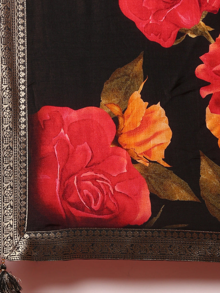 Discover the elegance of this Black Tissue Printed Three-Piece Set, thoughtfully designed for both comfort and style. Crafted from soft, breathable tissue fabric, this set offers a lightweight feel perfect for everyday wear.