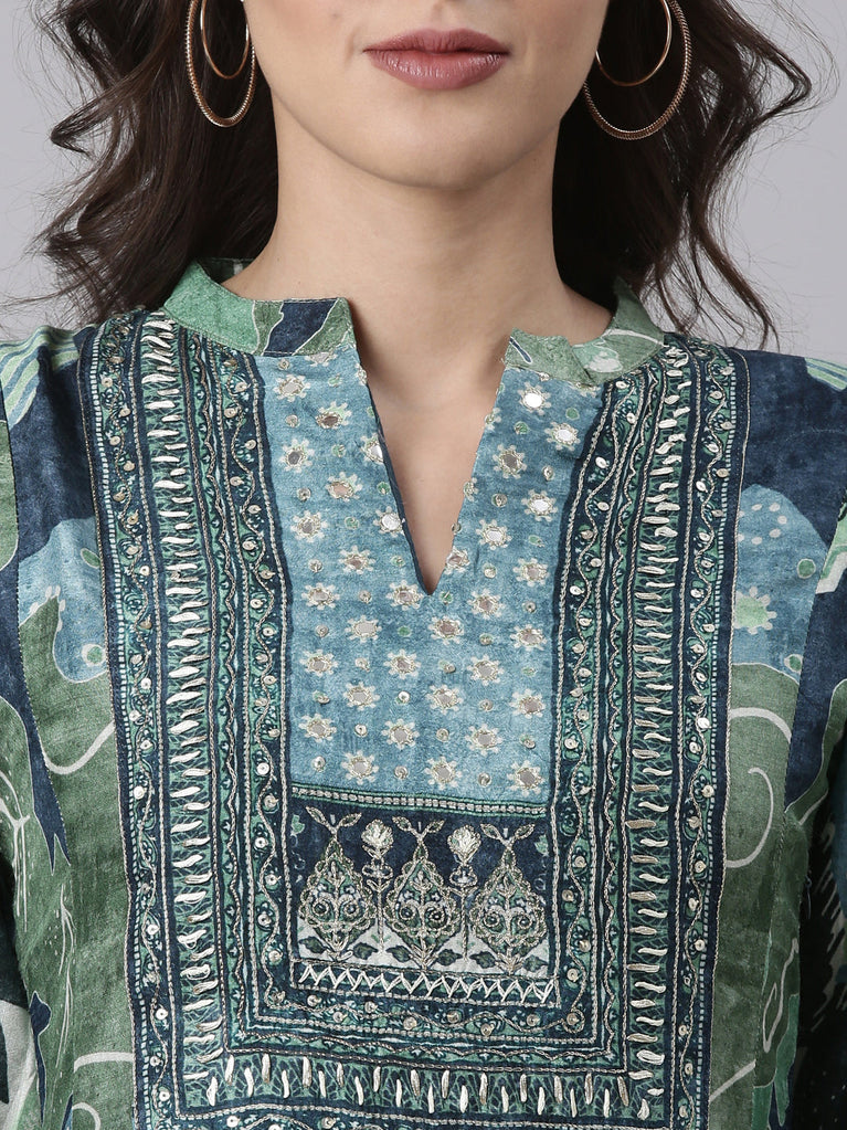Embrace timeless elegance with this stunning three-piece set in rich bottle green muslin. Delicate floral prints add a touch of sophistication to this versatile ensemble, perfect for both casual gatherings and special occasions. The breathable muslin fabric ensures comfort throughout the day, while the coordinated pieces make styling effortless. Celebrate your personal style with a set that beautifully blends traditional charm with contemporary design.