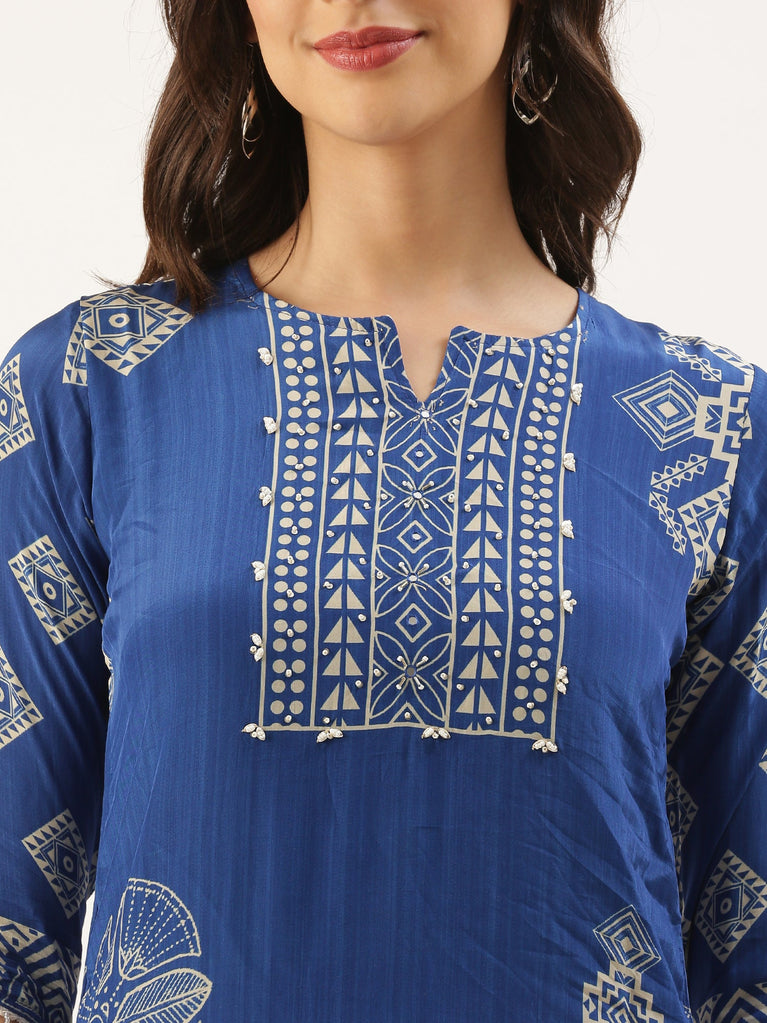 Experience comfort and style with this Blue Rayon Printed Three Piece Set. Made from soft, breathable rayon, it keeps you comfortable all day while the attractive print adds a fresh, vibrant touch. Perfect for casual wear, this set supports your need for ease and elegance in everyday dressing.