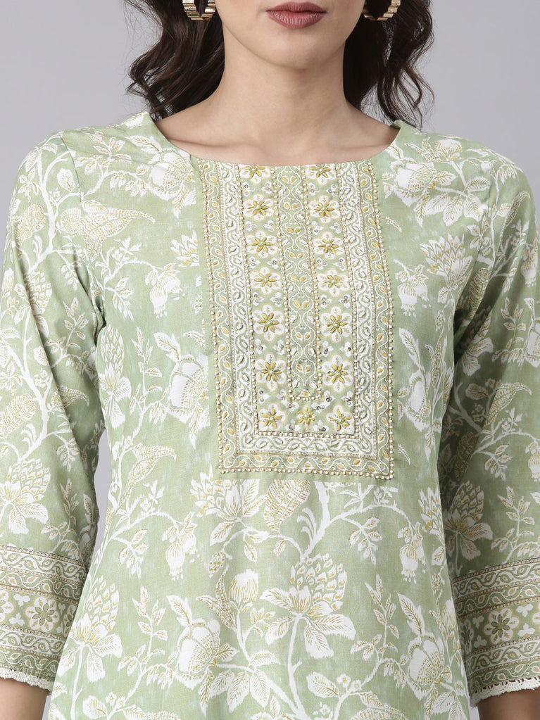Elevate your wardrobe with this elegant green floral printed three-piece jacket set, exquisitely hand embroidered to showcase intricate craftsmanship. Perfect for special occasions or festive events, the lightweight jacket adds a refined touch while providing comfortable wear. This coordinated set offers versatile styling options that blend traditional charm with contemporary flair, ensuring you stand out with grace and sophistication.
