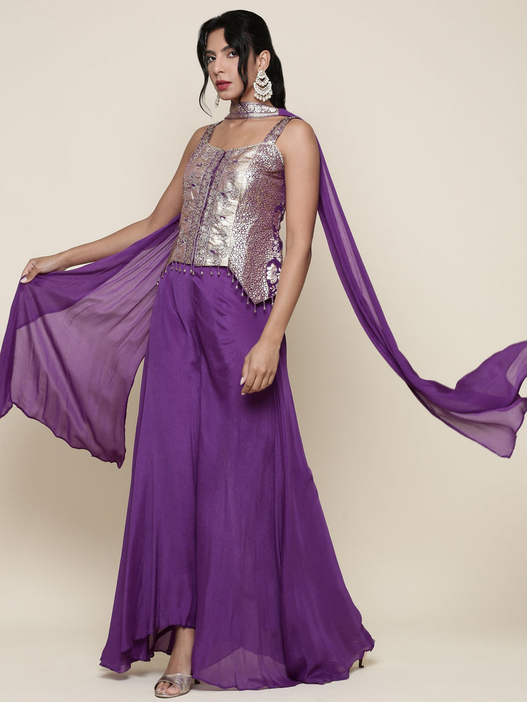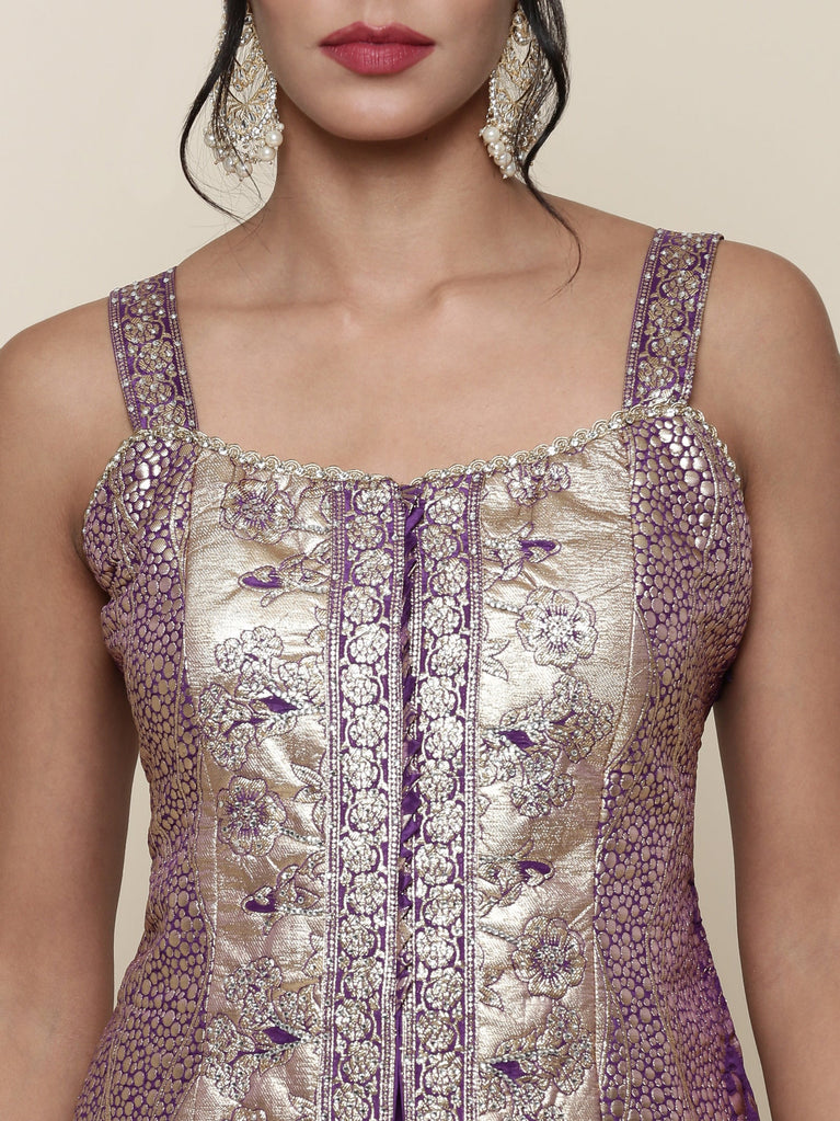Lavender Banaras Silk Anarkali Set