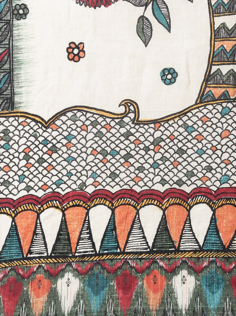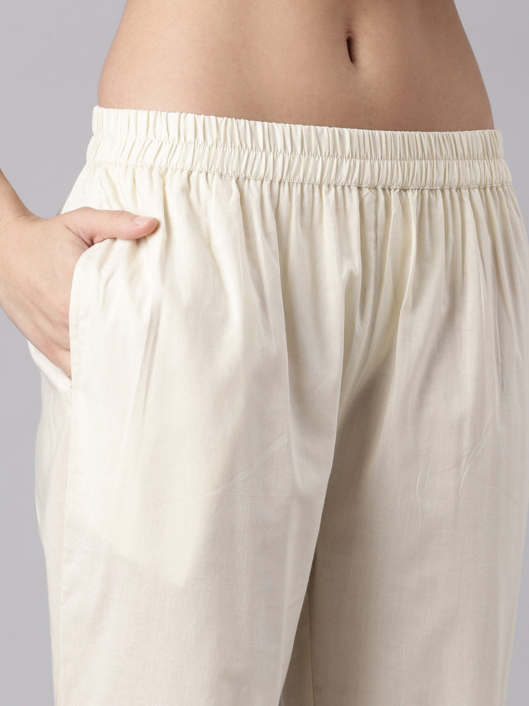 L Beige Slub Rayon Printed Three Piece Set