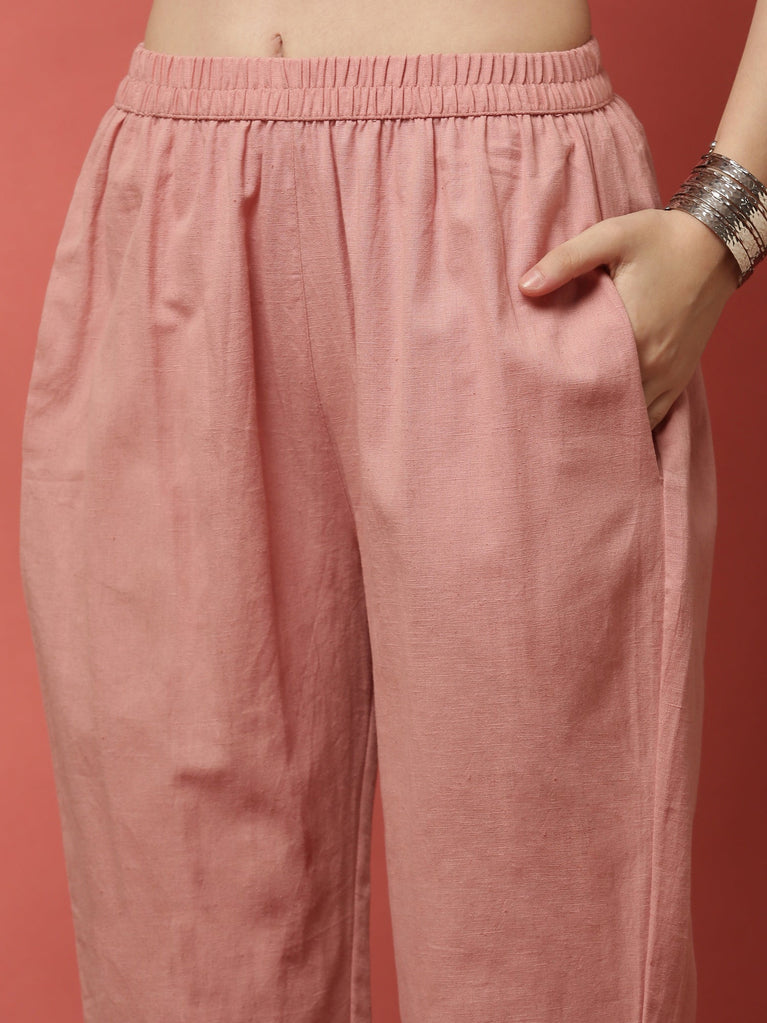 Light pink linen thread embroidery two piece suit set