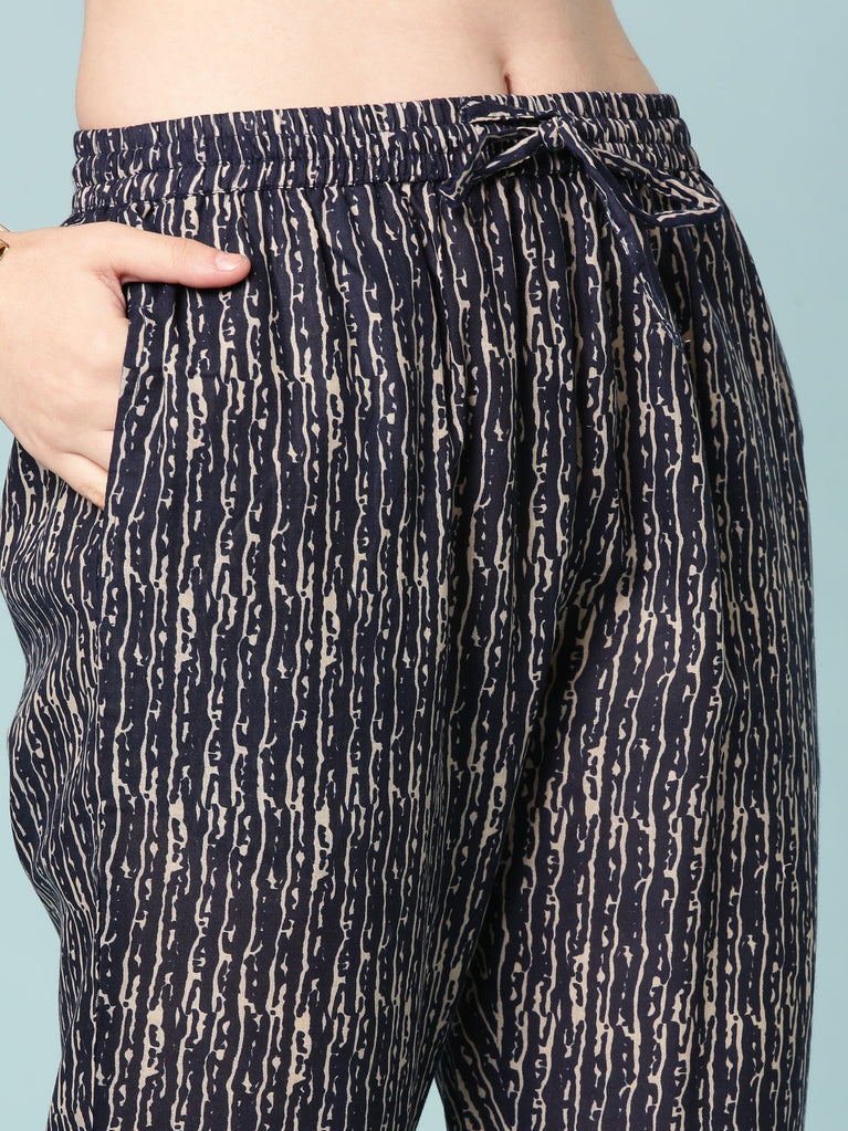 Indigo Cotton Digital Print Three Piece Set
