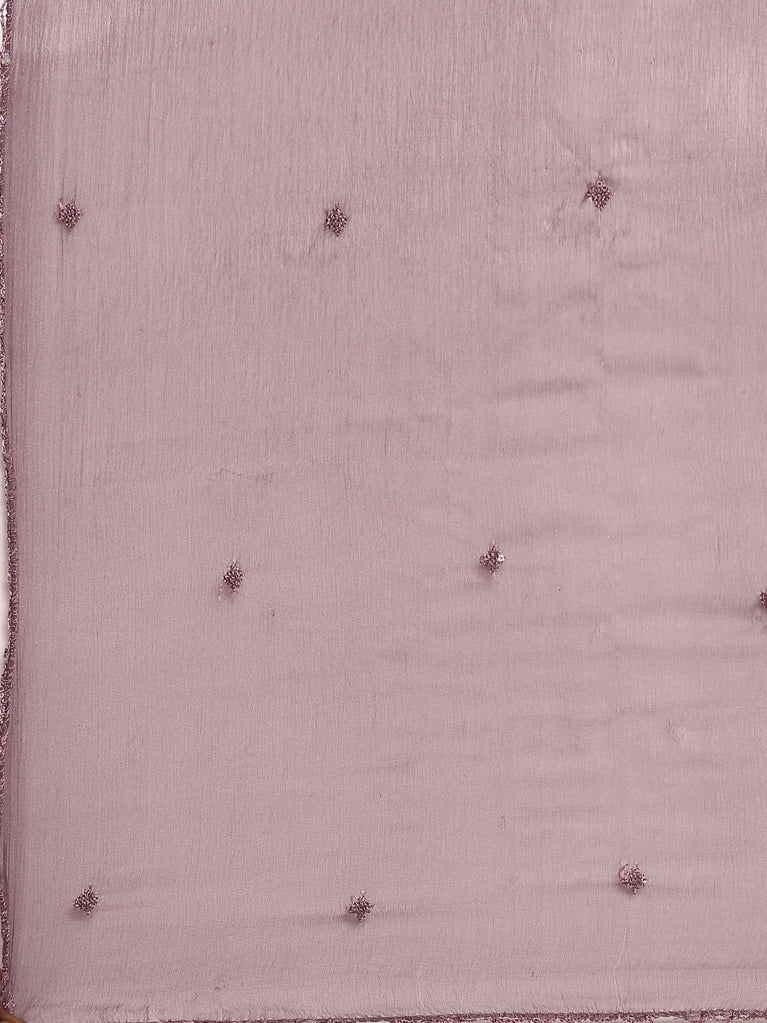 Elevate your ethnic wardrobe with this exquisite Lilac Chinnon three-piece ensemble. Crafted from premium chinnon fabric, known for its lightweight breathability and elegant drape, this set combines traditional sophistication with contemporary styling. The soft lilac hue offers versatility for both festive occasions and everyday wear.