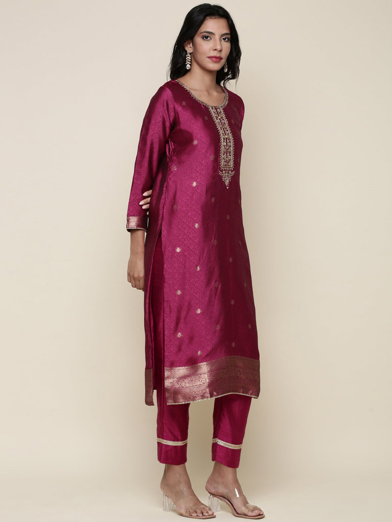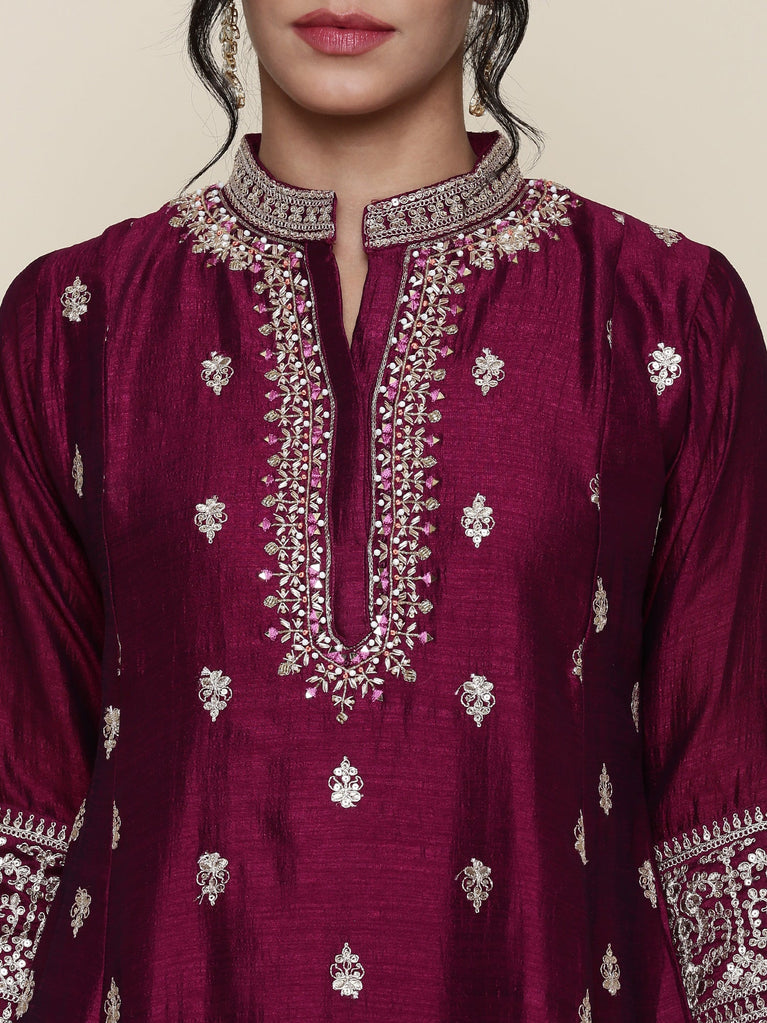 Magenta Silk embroidered three piece suit set