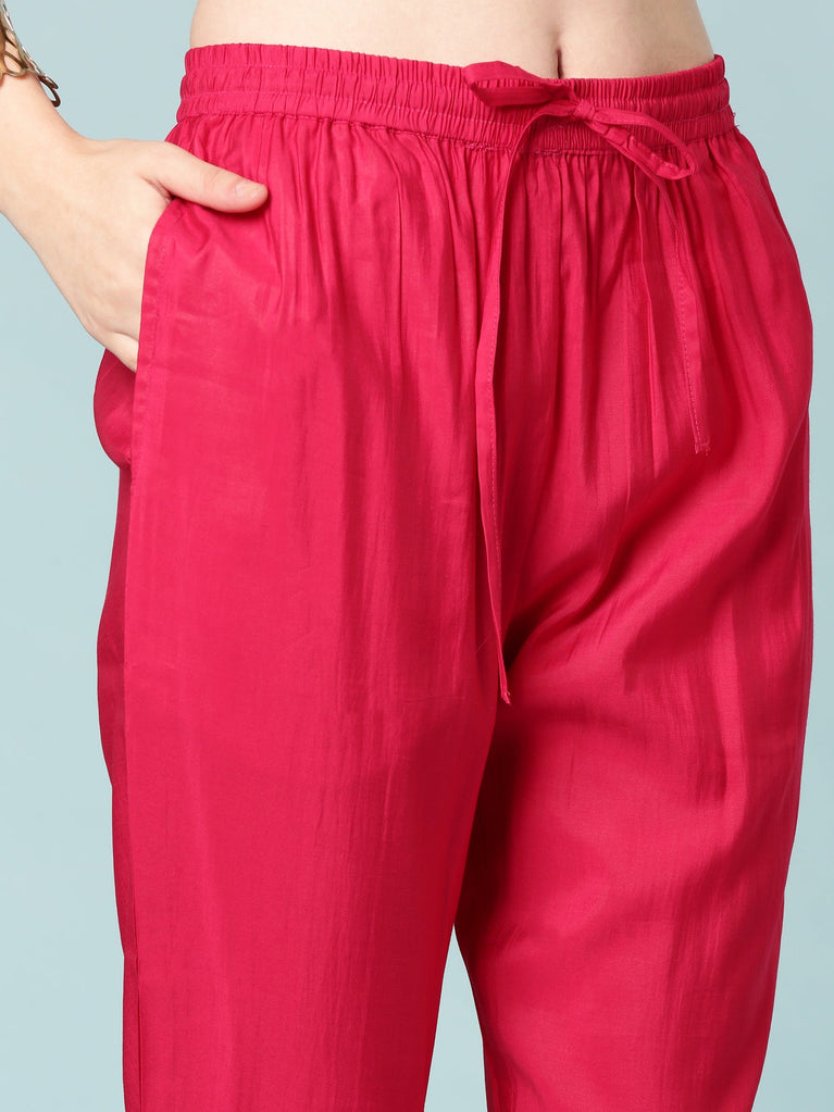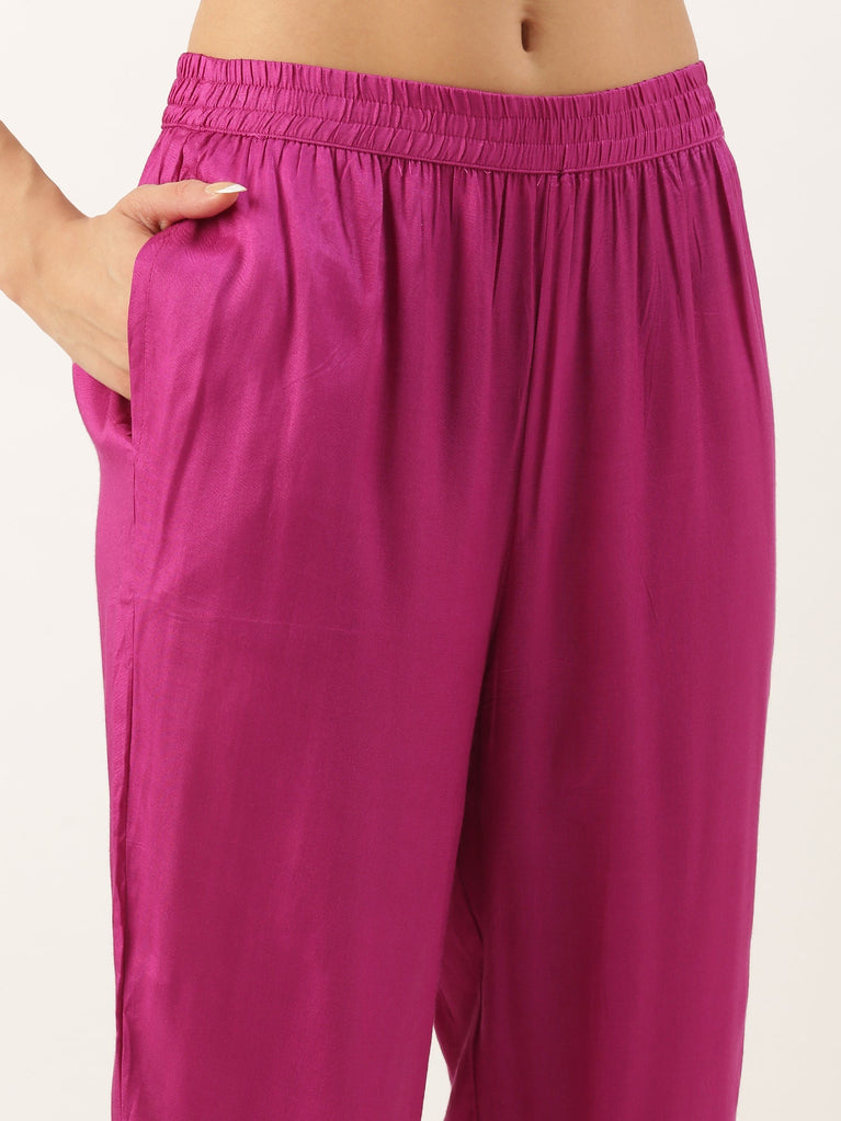 Magenta Crepe Kurti And Palazzo Set