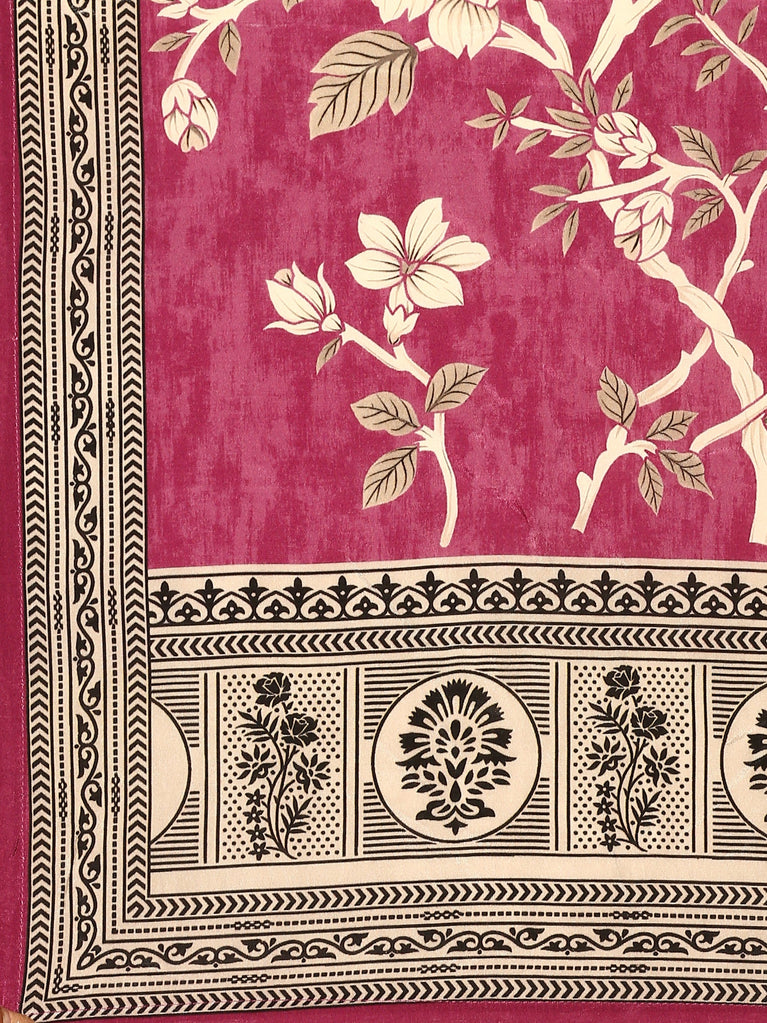 Magenta Muslin Digital Print Three Piece Set