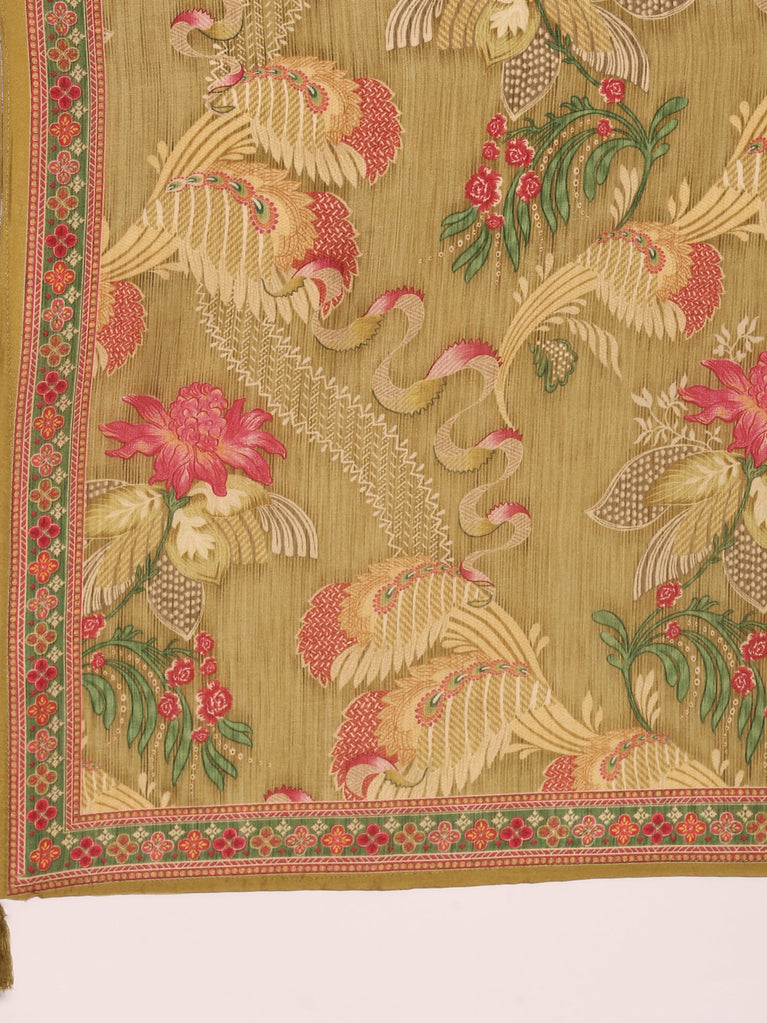 Lime Green Dola Silk Floral Printed Three Piece Set