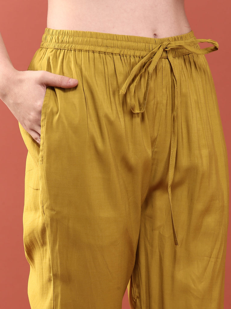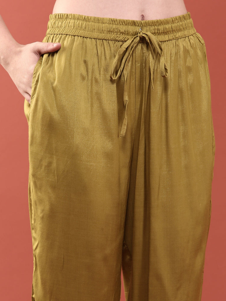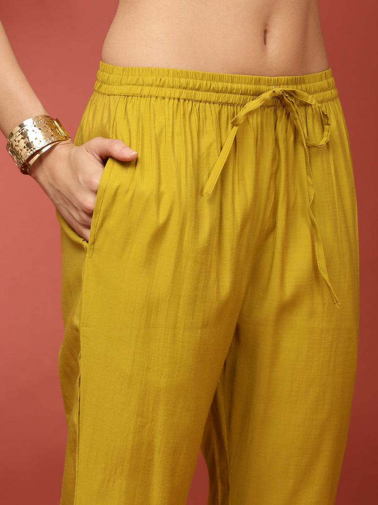 Lime Green Linen Digital Print Three Piece Set
