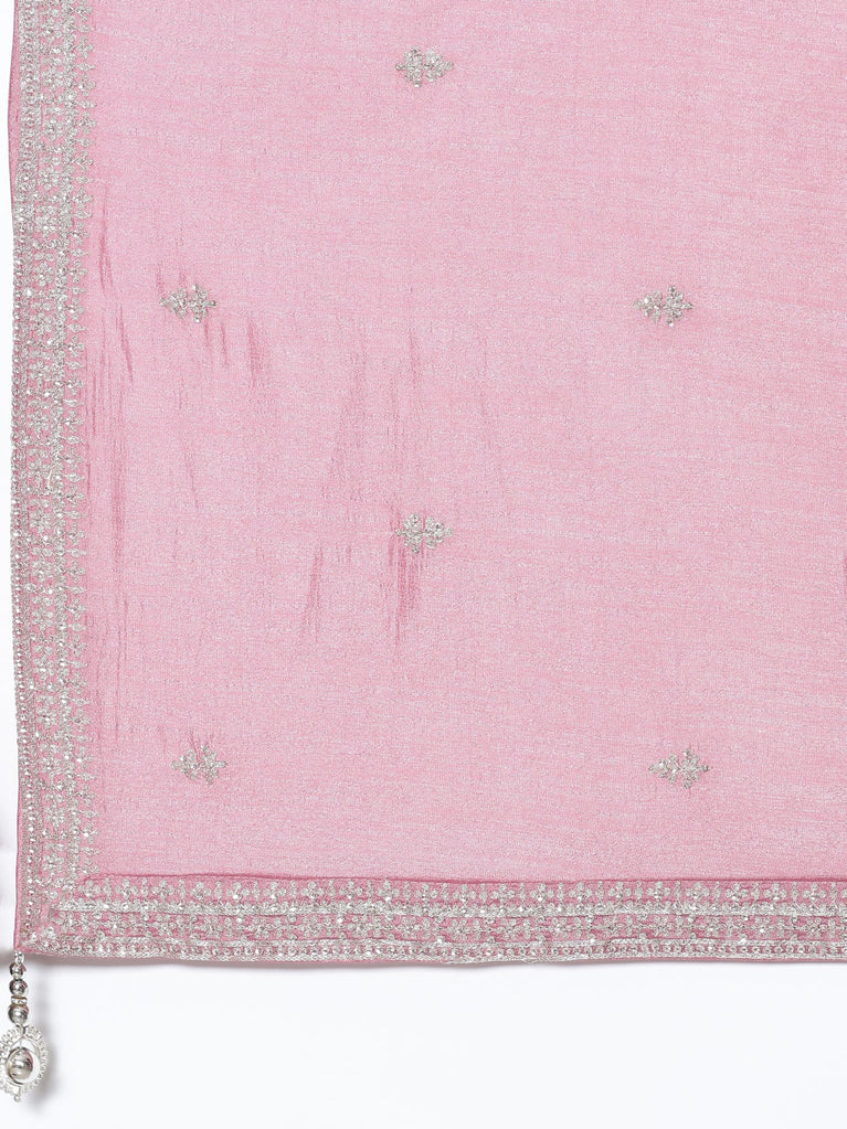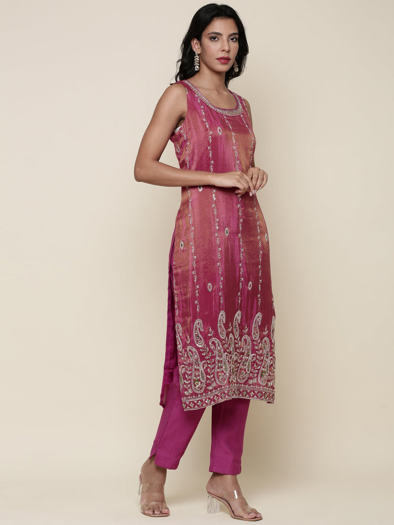 Magenta Tissue suit embroidered three piece set