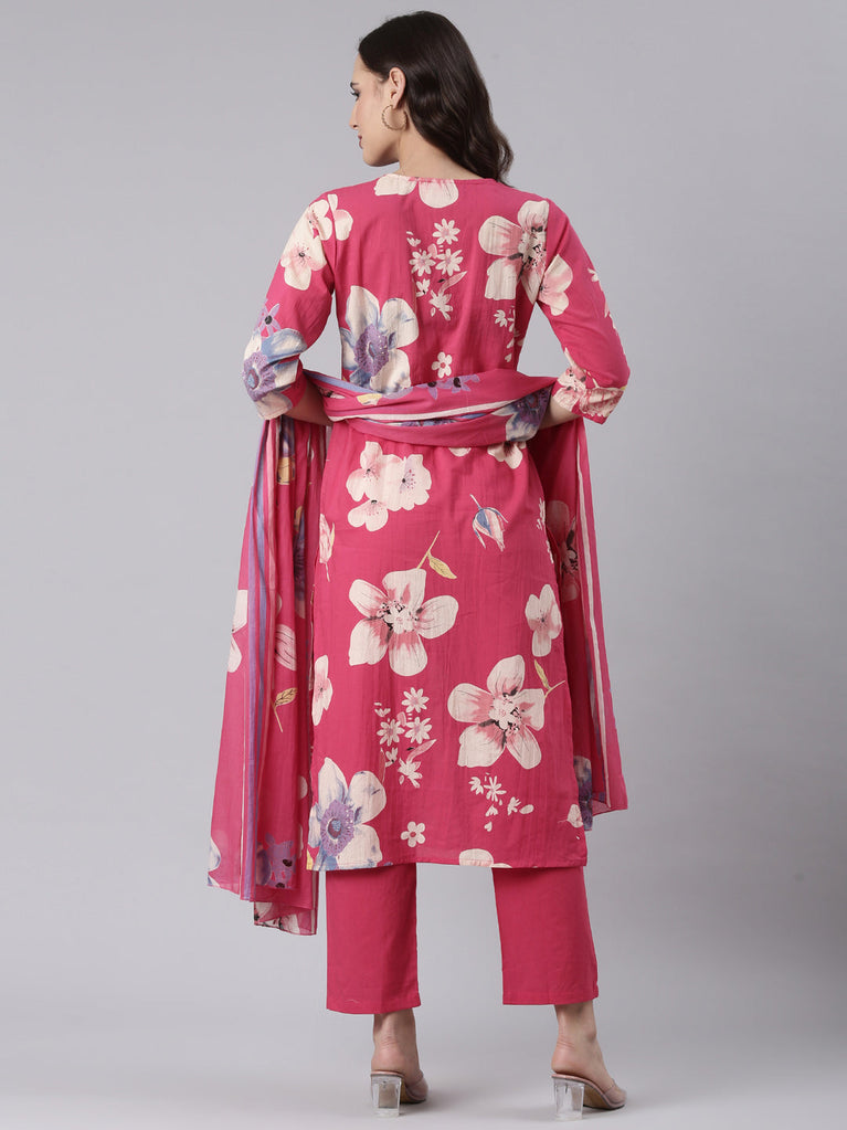 Magenta cotton printed three piece set