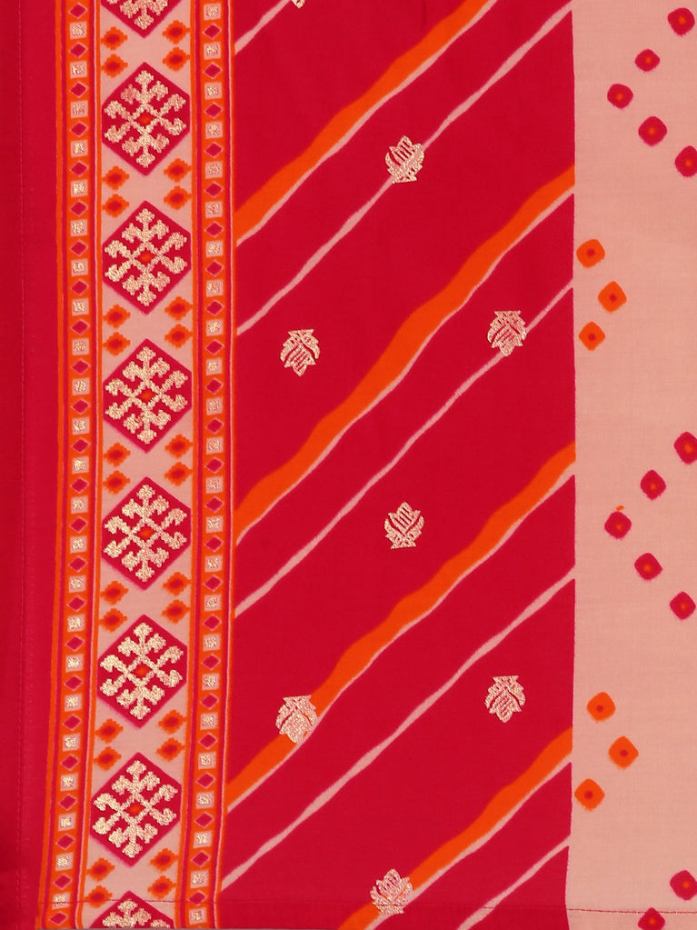 Magenta Muslin Bandhani Printed Three Piece Suit Set