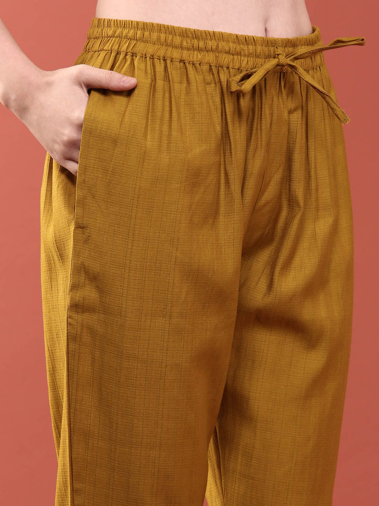 Elevate your ethnic wardrobe with this striking magenta crepe ensemble. The kurti features refined tailoring with a graceful silhouette, while the coordinating palazzo pants offer effortless comfort and movement. Crafted from quality crepe fabric, this set delivers a polished look perfect for festive occasions, celebrations, or everyday elegance. The rich magenta hue complements all skin tones, making it a versatile addition to your collection. Ideal for those who appreciate timeless style with contemporary appeal.